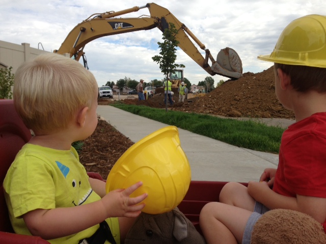 Instead one of our favorite things for entertainment is to watch the construction trucks that are building houses in our neighborhood. My boys could sit for hours and watch them, they even like them in the evening after the workers have gone home and the trucks are silently parked. Seriously what is better than an excavator or front loader in a little boy’s eyes?