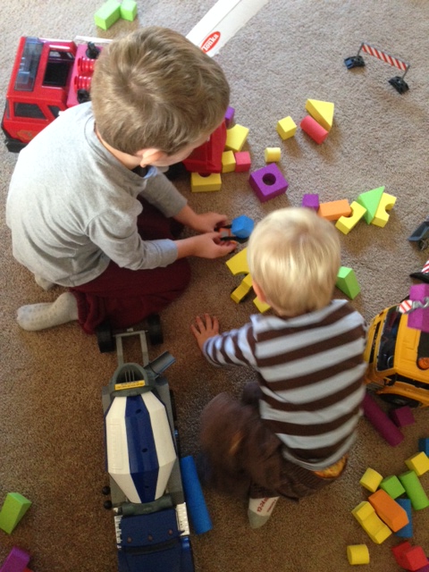 Eventually all the construction trucks made it and then construction began on the great city. The boys played great together and it was fun to just play with them.