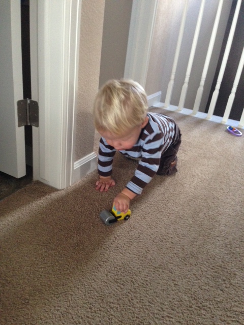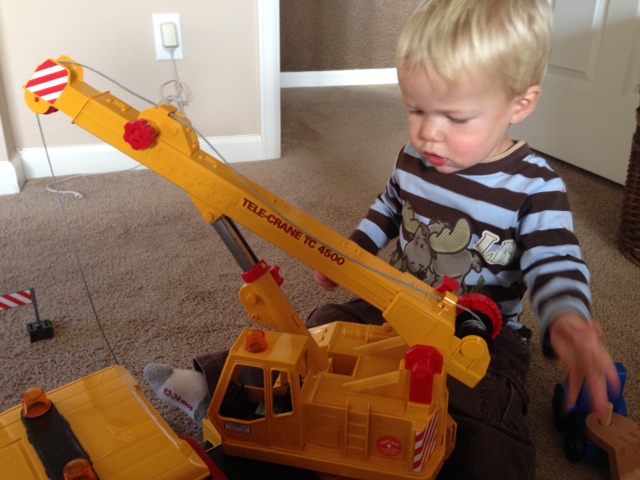 Shortly after I finished my breakfast, the trucks started moving to the construction site, which happened to be set up in mommy’s bedroom. It took awhile to get all the trucks down the hallway to the construction site, especially since they had to “stop and get gas” at the humidifier in the boy’s bedroom.
