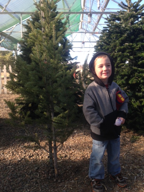 After walking around and picking out the big tree we found a little tree for their room. Leighton was super proud of it.