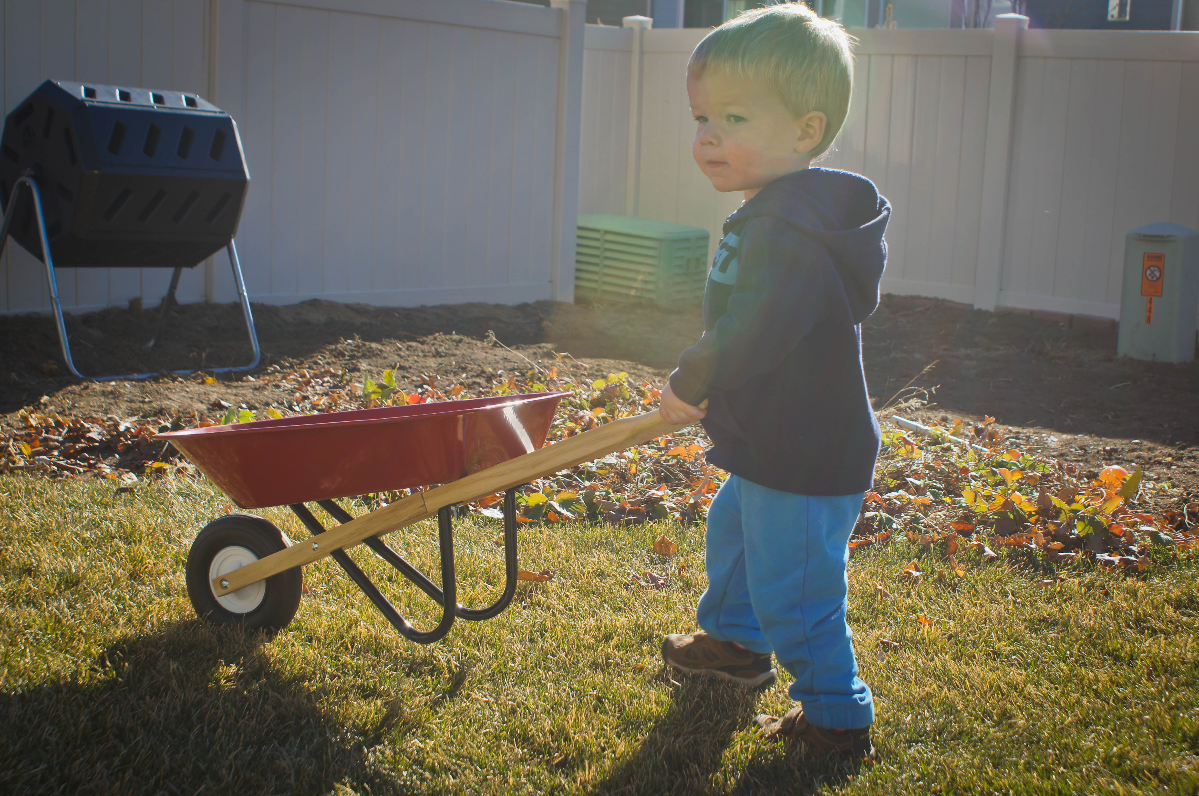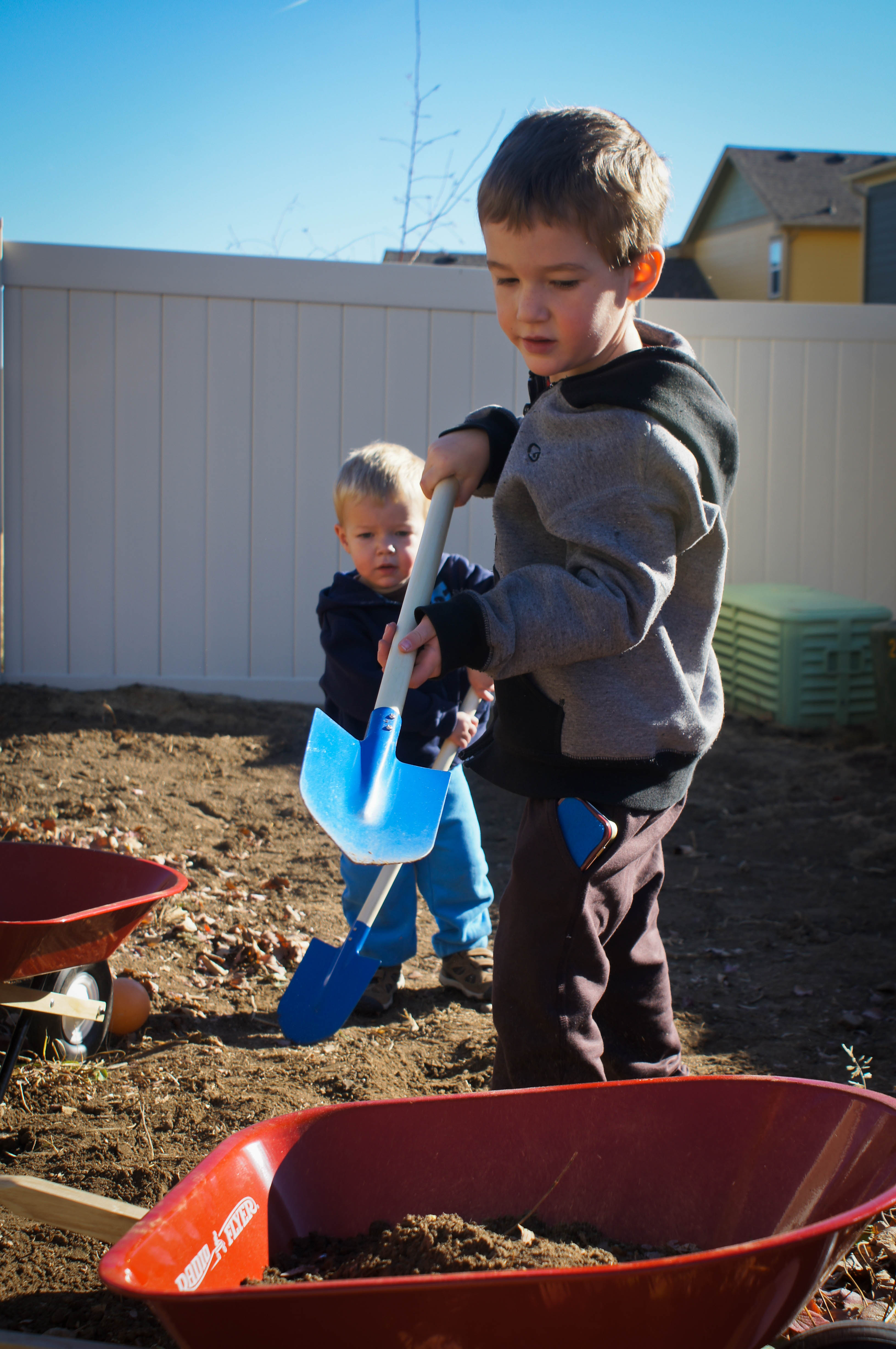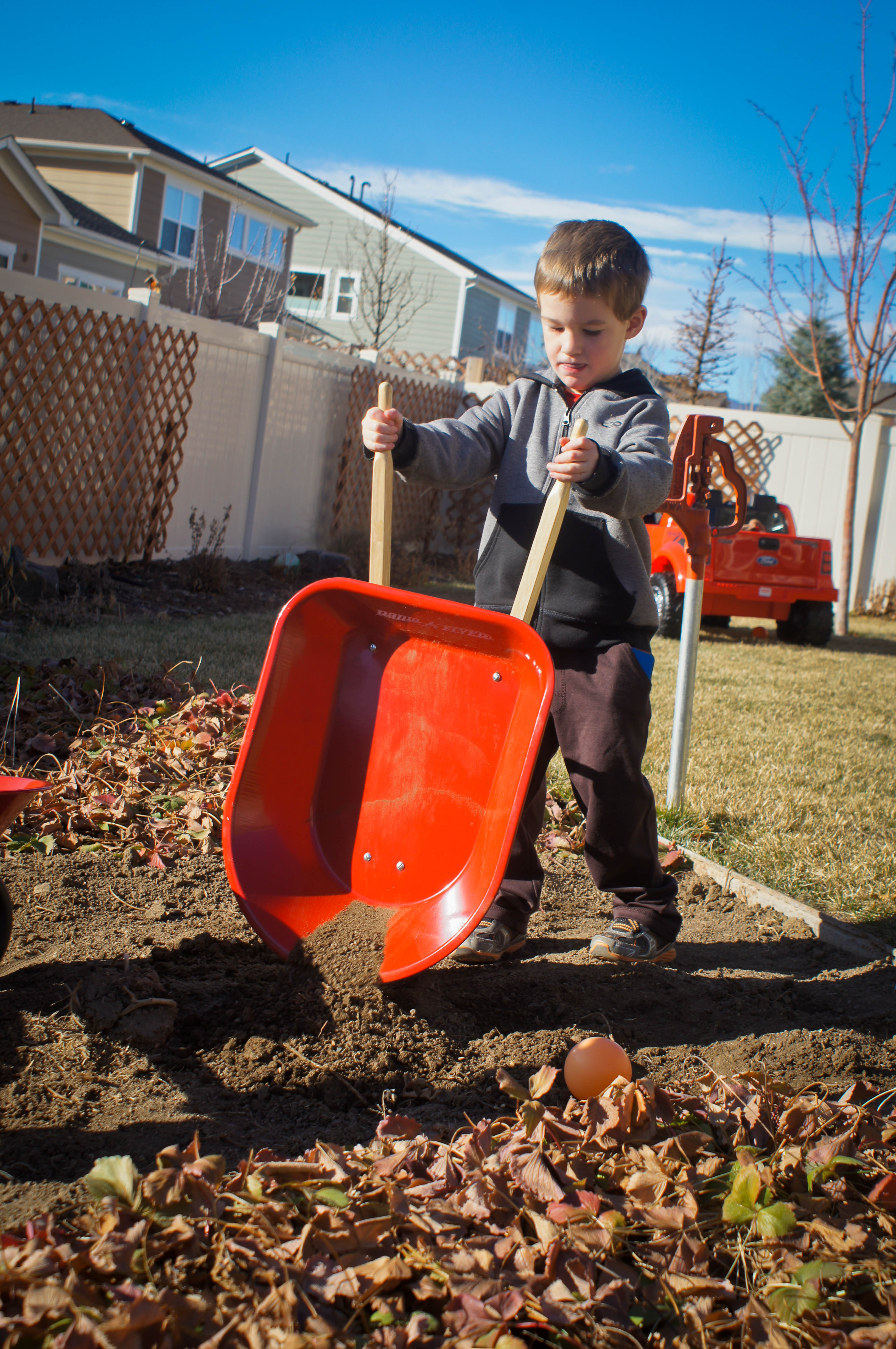 For Christmas my brother got the boys a red truck that they can drive around the yard and my parents got them matching wheel barrows and garden tools. They couldn’t be happier. Any day that it is decently nice (a term used loosely, basically if I can bundle them warm enough they its deemed “nice enough”) then the boys are outside digging up my garden and hauling dirt around. Usually the dirt is somewhat like mud since we’ve had a decent amount of snow (don’t even ask what my floors look like…lets just say my broom and mop are getting a workout). My garden is getting quite the workout and I’m not even sure that we will need to till it this spring… Leighton is already asking if we can plant a section just for him, which I’m all for. He tells me often as he loads his truck up and hops in to make a trip around the yard that he’s “just like grandpa”.