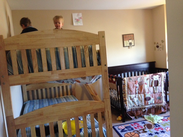 We moved Leighton and Caedmon into a room together a few months ago and plan on putting Edric in that same room when he comes home. We’ve been told that the little ones coming home are use to sleeping with someone and so I think all three sharing a room will go pretty well. We didn’t know how the two would do initially but it actually went pretty well. There are times when we put them both down at night and in the monitor we can hear them talking to each other which is sweet. So far if one wakes up or throws a fit going to bed the other one hasn’t really seemed to mind and often sleeps through it.