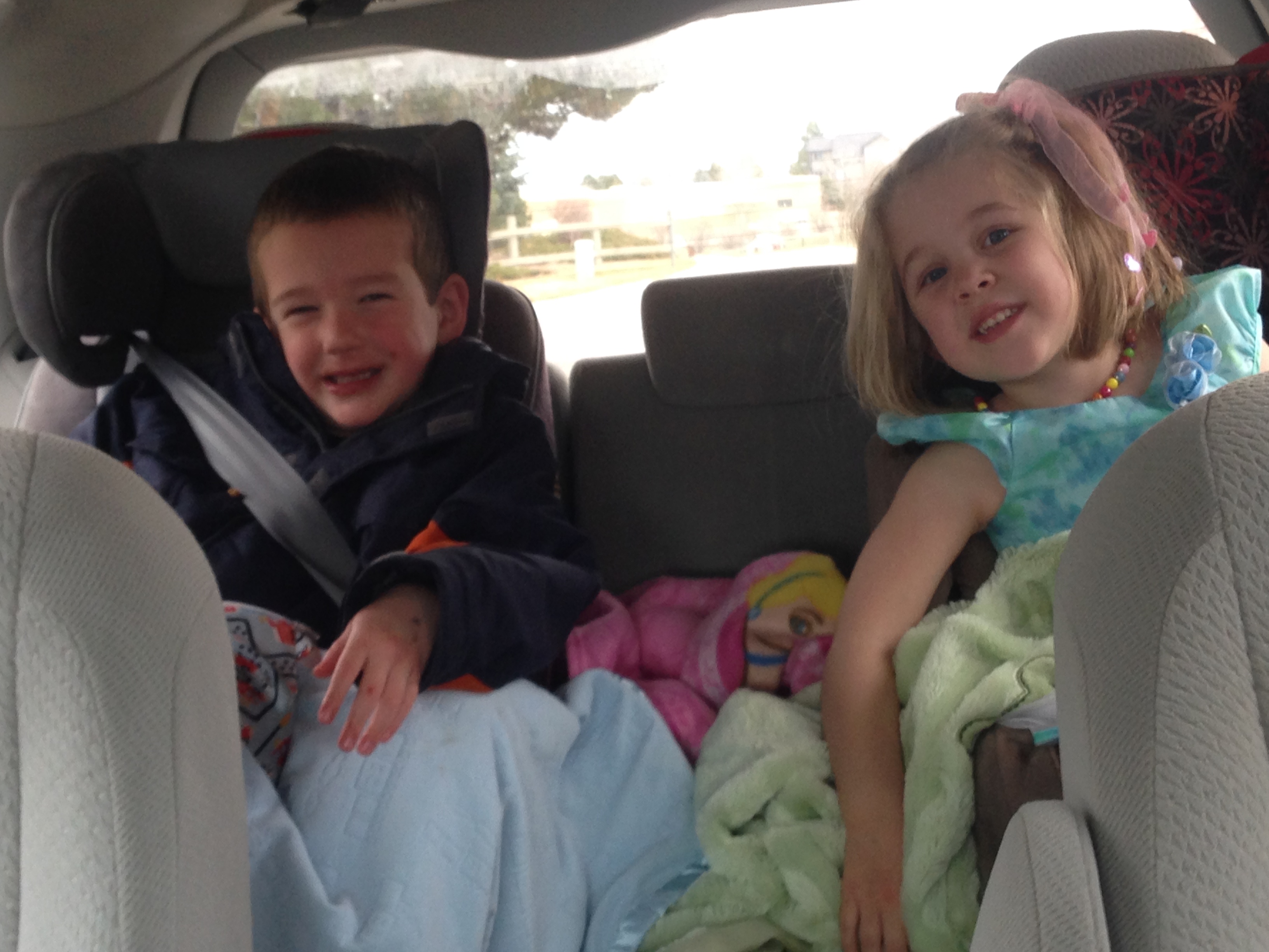 The weather was not in our favor that day, and so after evaluating that, and meeting another friend, it was decided that I would drive to the houses and Melanie and her other friend would jump out and talk to the people and I would look up the next houses and go from there. We had the two kids in the back of the van and so I intermittently entertained them too. If they do end up getting married many (MANY) years from now, they can talk about their first date in the back of the van. Katherine even dressed up and wore a pretty dress for it. How many people can boast a first date while still in booster seats and eating gold fish crackers, doesn’t get much better then that does it?