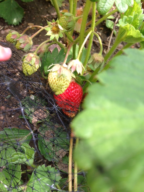 And on another positive note, none of my tomatoes or peppers have died and my broccoli is looking good. I also had my first ripe strawberry and I have three or four just about ready. Of course we are going on vacation in a week and so I figure the rest of the patch will ripen during the week that we are gone. We got no strawberries last year because our beloved robin (aka “Hook”) ate all of them, and now this year our neighbor girl will get them as she waters our garden while we are gone. Go figure.