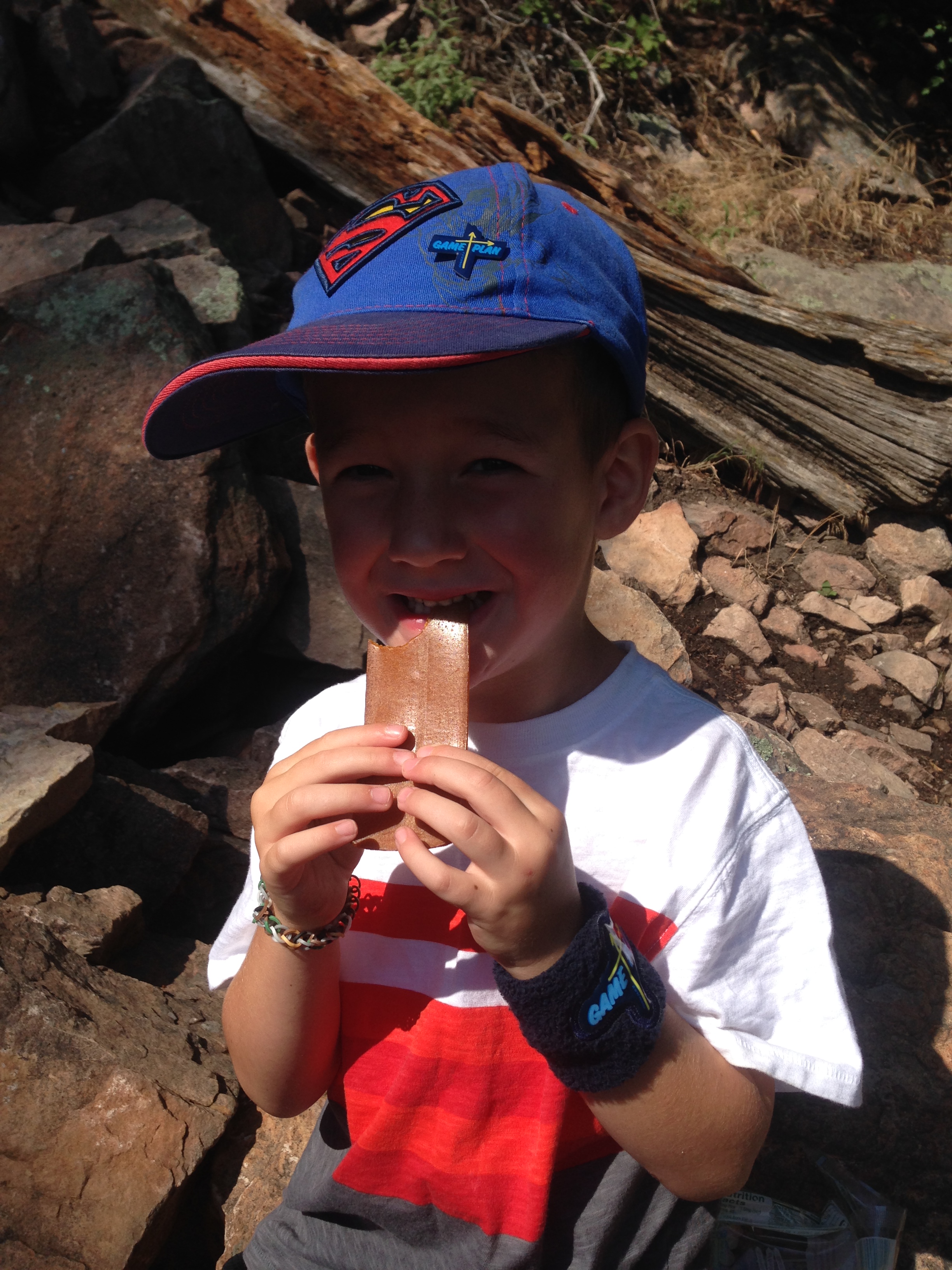 We at lunch at the top. The top of the trail actually twists arounds and ends up on the back side of the flatiron. We could look out and see for miles and see some snow capped peaks off in the distance.