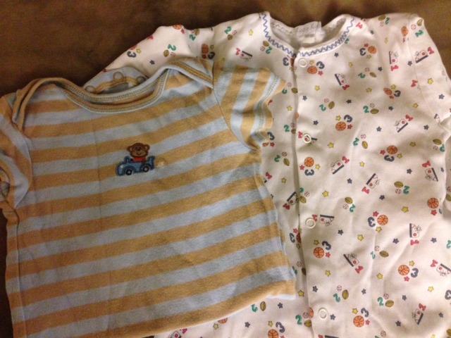 I of course sent a couple things of clothes, but just a little onsie and set of sports pjs. We did get his photos from his August visit and he was wearing the yellow monkey socks from package 8 that we had sent him! Foster mom always makes sure he is dressed very nice for his visits and photos each month, this month he had a button up sailor shirt with a little white tie.