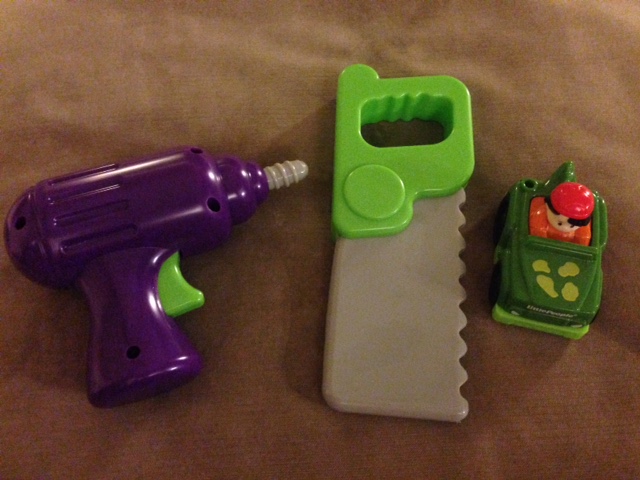 We were finally able to include the last two pieces to his tool set. He now has a complete set! And a little car thrown in.
