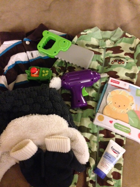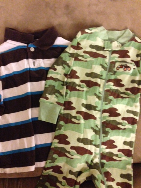 Leighton calls camouflage “boy colors” and so we included some pjs in “boy colors” in this package. Also a handsome polo shirt for him.