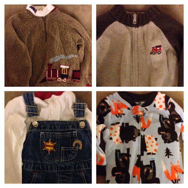 Boxes are much easier to pack clothes in, especially cold weather clothes. I loaded his box with two train sweaters, a cowboy overall set, fuzzy jammies, and a winter coat. A friend made a penguin hat for him that I included as well. I’m hoping I will get to see one of his monthly photos with him wearing some of these. I hope that Foster Mom is taking photos of him often and that we will get to get copies of those photos when he comes home, there is so much that we miss out on with each day, photos of him along the way will mean so much.