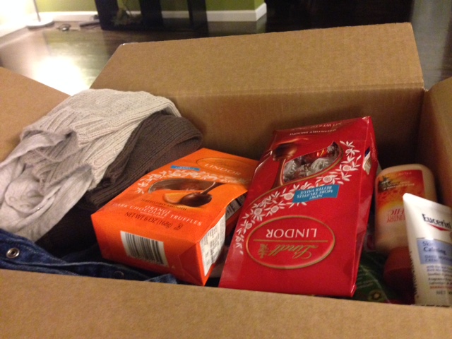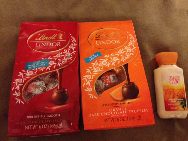 I sent along some chocolates and lotion for Foster Mom and her family as well. I figure one can never go wrong with chocolate (and I managed to keep Clint from eating it!) and lotion is always nice in the winter time.