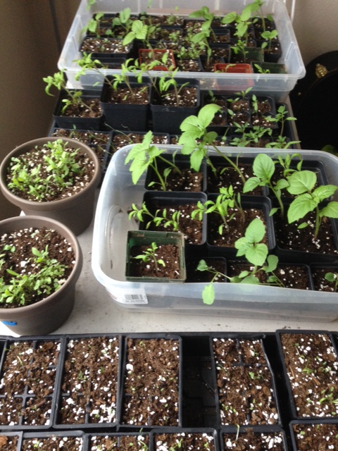 And my sprouts are doing good. Except for the peppers, which never came up. The tomatoes and tomatillos are going to town. I may end up having to buy some pepper plants from the local nursery. Oh well.