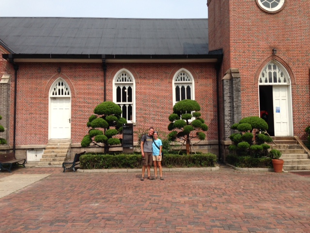 We headed out this morning and met up with some friends at Chungdong First Methodist Church. It is actually not only the first Methodist church built in Korea 130 years ago, but was actually the first Protestant church built and established in Korea 130 years ago. There were 2 ministers from the US that landed in Korea on the same day from the same ship, one a Methodist and the other a Presbyterian, and they both started churches just a few blocks from each other (with a major palace in between them) but the Methodist church was the first building built 130 years ago. Our friends are methodist ministers in Indiana and they had found the church online and so we went to their English speaking service. We really enjoyed the service and felt very welcomed.