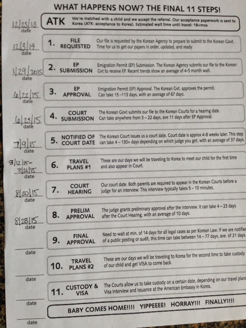 The next step is final approval. We are entering a 14 day final waiting period and then final approval will be issued. Most of the time it takes 14-16 days with time changes and all, so I’m hoping we will hear on or around September 14th. After that we are free to make our travel plans and head back to Korea to take custody and get Edric’s Visa and bring him home!