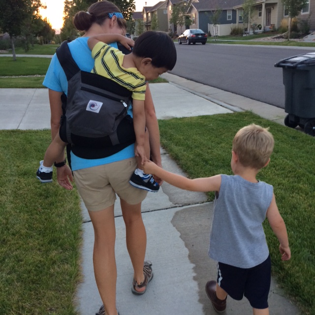 In Tokyo we ate our lunch and walked around a bunch trying to get our legs ready for the long flight. Edric was happy and easy going and played and ran and rode in the carrier. And then it was time to board our flight. We were on the Dreamliner again and had paid a little extra for the economy plus, which adds some inches and allows your seat to recline more. Definitely worth it. The flight was nowhere near full which was really nice.