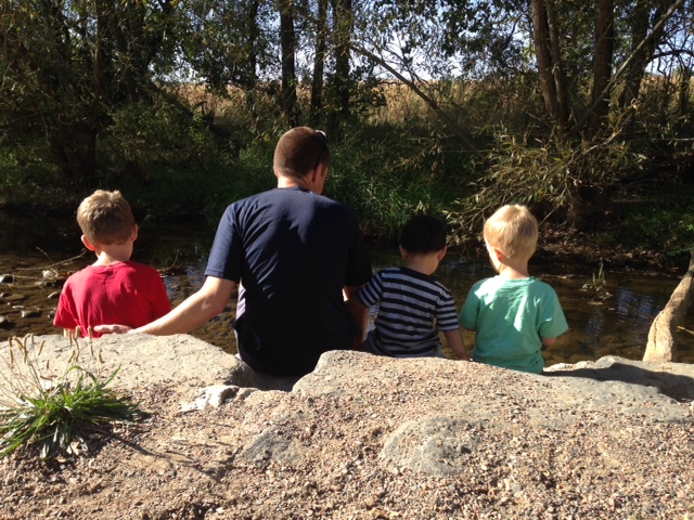 Edric’s first night home went really well, he slept almost all of the night. He woke once with a dirty diaper and I ended up sleeping with him in his bed after that, but all in all it went really smooth. We’ve shrunk our world down a lot and are just working on getting into a simple routine. Lots of play time and time together. We went on a family run/bike/stroller ride yesterday morning which of course included mandatory rock throwing in the stream. And it was warm enough we pulled out the slip-n-slide and the boys had fun with that.