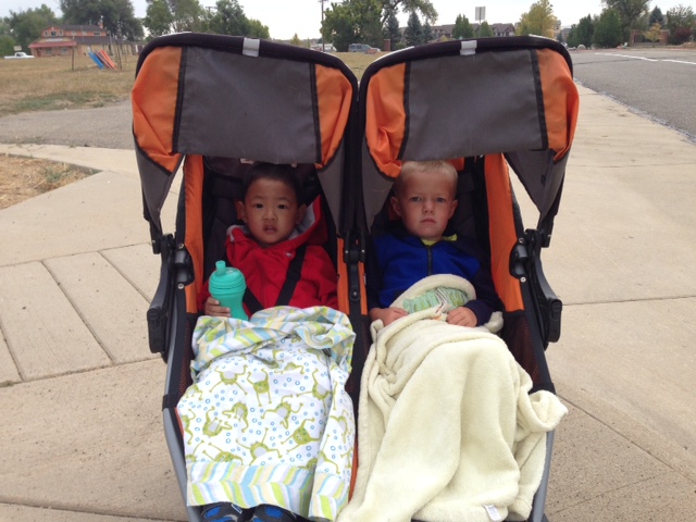 Yesterday I decided to load both little boys into the double jogging stroller and jog Caedmon to preschool. Which happens to be uphill from our house. And 3.3 miles away. It’s normally a nice run but when pushing 55 pounds of kid not to mention whatever the stroller weighs, it can be a bit much. There was definitely some walking during my run going on. Especially on the big up hills.