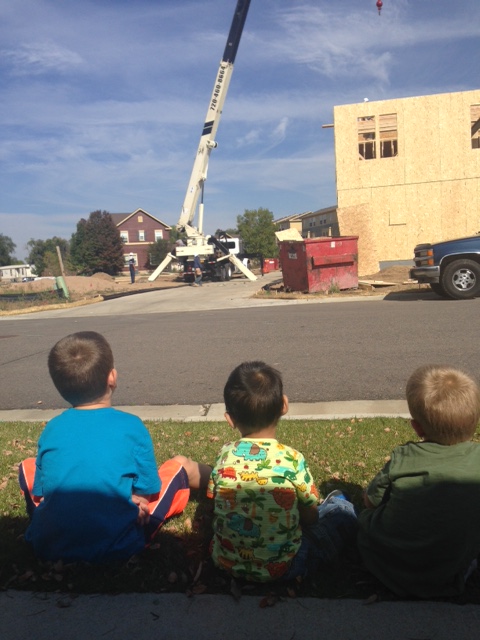 And lest we forget the hawk in the midst of 3 year old volcanic eruptions. We had just finished dinner and I had run upstairs to throw a pair of comfy capris on so I could wash the dishes and clean the kitchen with the plan that Clint would take the three boys outside and run/wrestle/tickle the last bit of energy out of them in hopes of a smooth bedtime. From my bathroom I heard a squawking like I had not heard before. I rushed to the window and looked out, and Clint was standing in the middle of the yard with the hose aimed just above the window that I was at and was saying “It’s ok Ben, I’ve got you”. At the same time I could hear Leighton wailing downstairs. After the volcano earlier in the afternoon I was ready to just hide under my bed and eat chocolate, but instead I called out the window to Clint to find out what was going on. He yelled back something about a hawk.