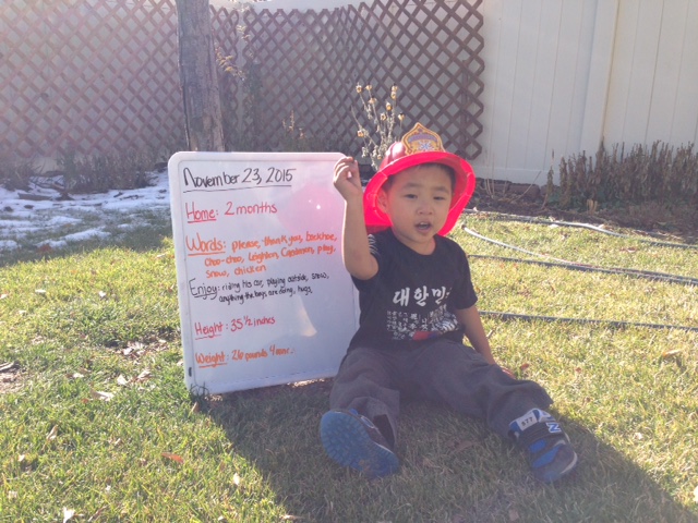 I am thankful for the family that loved and cared for him for over 2 years and prepared him to be a part of our family. They rocked him when he was sleep and took him to the park and shared many of his firsts and will always be a part of our family now.