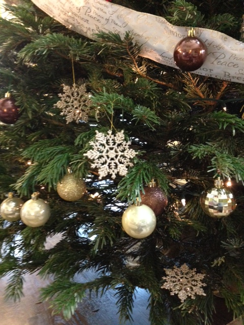 Saturday we decorated the tree and also decorated the little trees (ok really just random branches) for the boys’ rooms. I decided this year to just let them put the ornaments on where they wanted. We have many plastic balls and so there is a large concentration of ornaments at about the 2/3 year old height. There’s another concentration at about a 6 year old height. There are large sections with few decorations and then all the glass balls are at a “mommy or daddy on the ladder height”. It’s a great tree and the boys also had fun decorating the twigs that we put in their rooms.