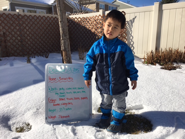 I was pretty sure that the holidays might throw Edric for a loop and it did. I don’t think I anticipated the extent of the setbacks that we saw, but I’m glad I had read other blogs talking about stresses and changes for little ones recently home can be really tough. We were at least aware and had planned pretty well. We asked Clint’s parents to stay in a hotel because we didn’t know what Edric would need and that was clearly the best decision that we made.