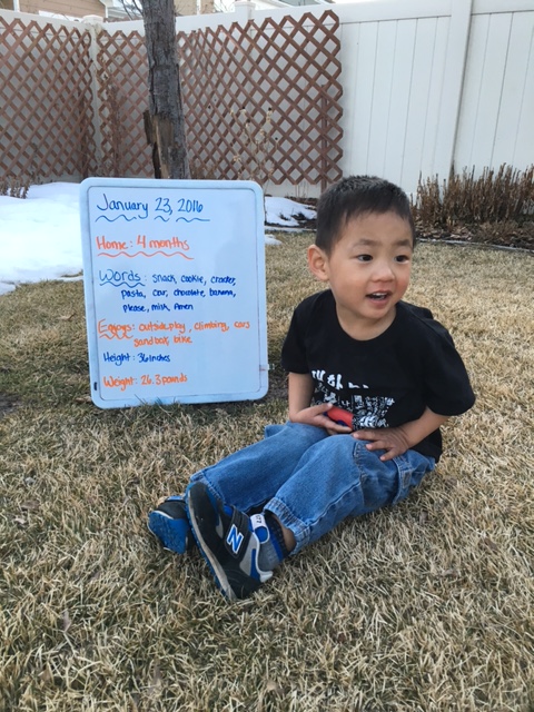 We are doing well. I feel like we have settled in and kind of know what to expect and seeing small progress each day and can anticipate what’s coming. Edric’s speech is opening up, he has started repeating and imitating a lot of what he hears. The other morning Clint went in to wake him up and as he woke up he said “chocolate snack?”. I think it was the first time he put two words together on his own. Unfortunately Clint did not let him have a chocolate snack for breakfast. It has been good for Clint and I to step back and really focus on what we are saying and how we are interacting with him and language and remembering that while he is in a 2 ½ year old body, he’s only processing and speaking at a 12 month level. We have started going to toddler story time at the library too to help with other exposures to words and books and group settings outside of our home. It is hard not to see it as “toddler germ fest” at times, but I know it’s good for him.