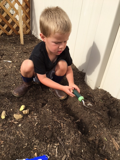 I also decided to make my garden smaller. However that allowed the three boys to each have their own gardens, which they are super excited about. Where I planted 15 or so tomatillos last year, this year I only planted 2. And where I planted 10 peppers last year, this year I only planted 4. But with that we got to plant a lot of things that the boys wanted to plant…and so we have corn, broccoli, carrots, cucumbers, beans, onions, pumpkins, kale, potatoes, sweet bell peppers, and lettuce.