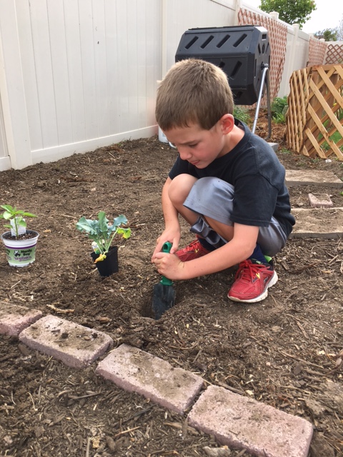 The boys loved digging the holes, filling the walls of water, making rows with their hoes, and putting the seeds in (we planted many seeds, just didn’t start any early inside). It was a great day.