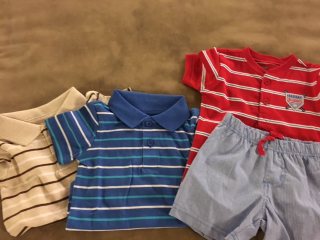 I seem to send a lot of clothes I’ve noticed. They pack well and I hope that they fit. I may need to look into some more ideas as to what to send. But I’m hoping he will look super handsome in these shirts and little shorts.