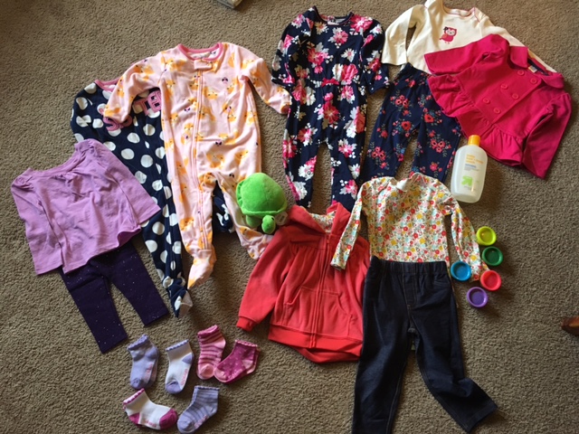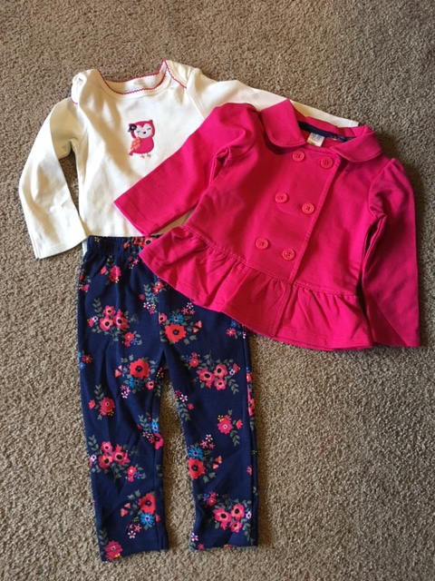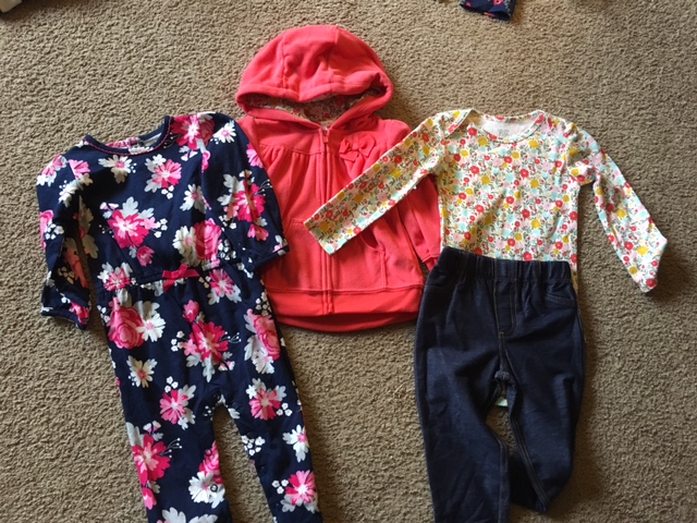 So here’s what I sent, a one piece pants suit and then little jean leggings with a flower top and matching fleece hoodie to go with it. It gets very cold in Seoul in the winter time.