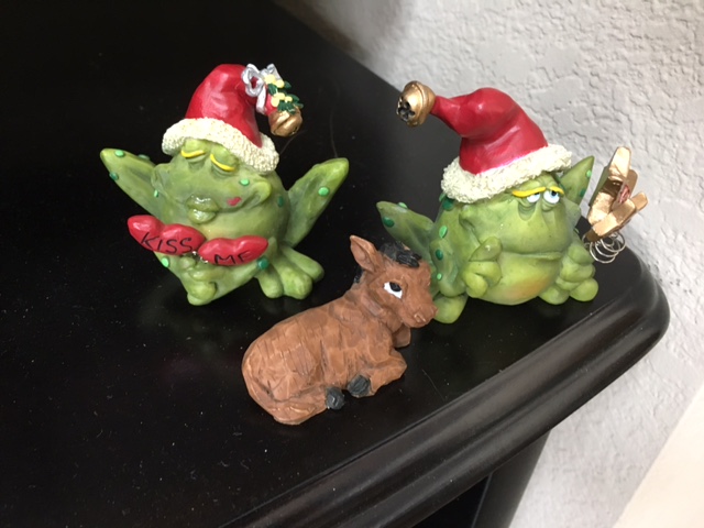 The nativity folk moved all over our apartment. The plan was for them to descend on the Marys hiding place just in time for our apartment mate Christmas party/gift exchange. That was the plan. Unfortunately I’m not that good of a Mary hider especially in a small college campus apartment and so when I went to reveal Mary and Mary, they were no longer there. My apartment mates had in fact found them and they wrapped them up and gave them to me for Christmas. In the end everyone was returned to their respective stables.