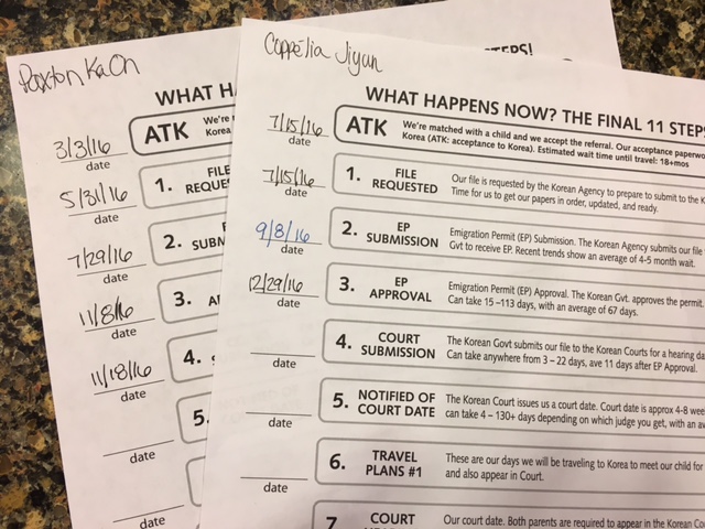 On Friday we got word that Coppelia’s exit permission had been approved by the Korean government. Sometime this week her file will be submitted to the Korean court system. From there we wait for a court date. But the part that typically takes the longest is now over!