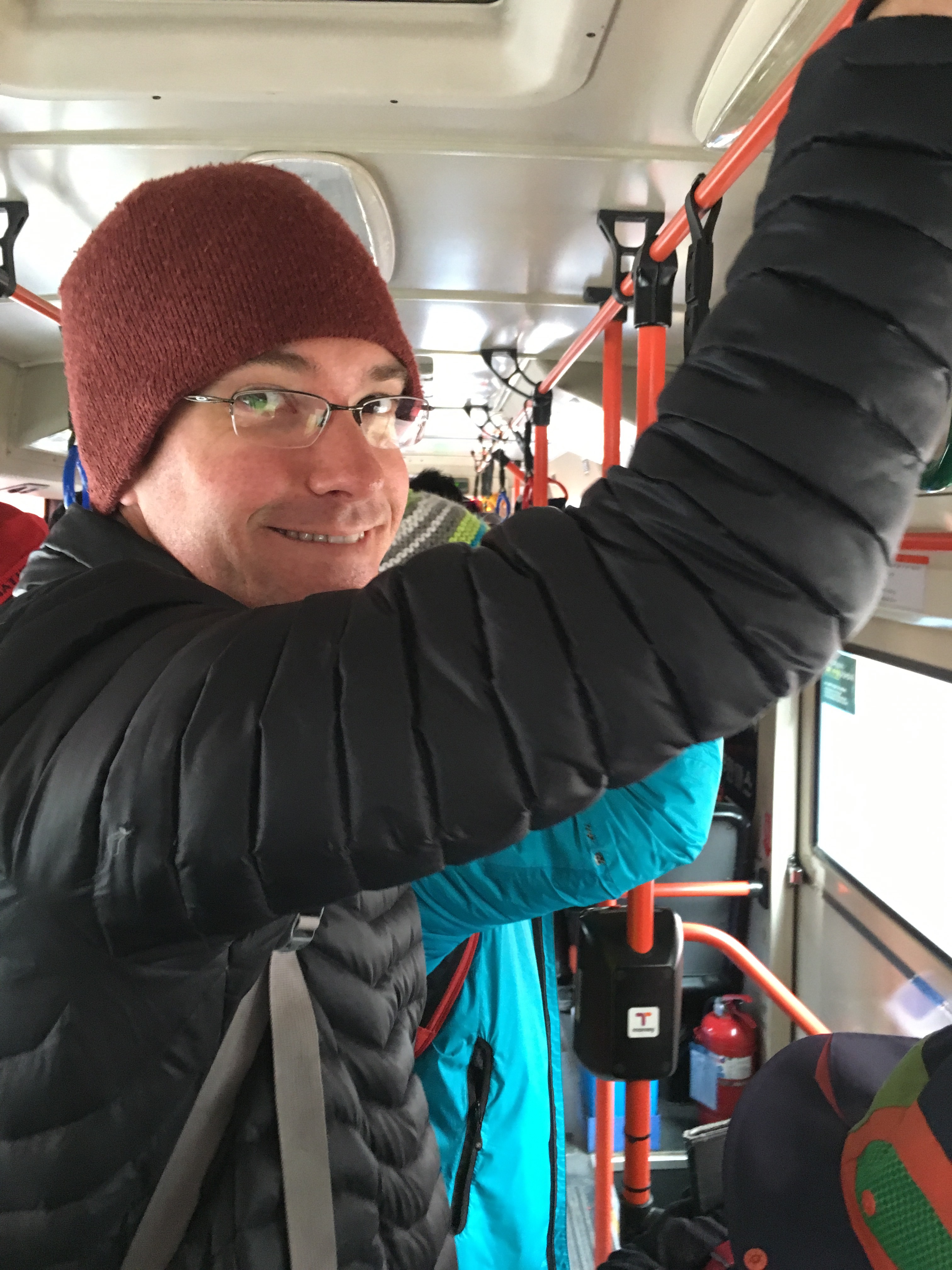 I should have been paying more attention because I think a number of those waiting for the bus were talking about my choose in shoes. Actually I didn’t have any other options, I packed my nice pair for our meetings, and brought my old trail running shoes. Clint also just had on tennis shoes. And if there had been no ice I think we would have done great.