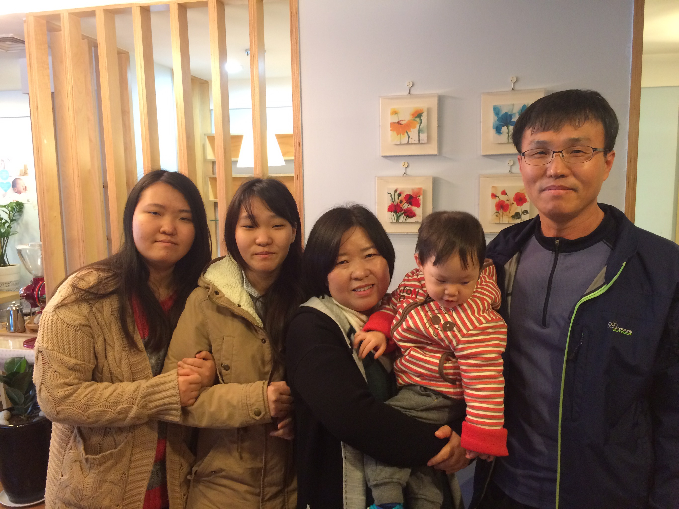 All of Paxton’s sweet foster family came with him to the agency today. They gave us a suitcase full of his things, as well as a large photo book of photos of him from the time they first got him. We gave them a photo frame carved out of wood with his name and birth date on it and then the country of Korea and America outlined with a heart carved out where Seoul and where Colorado are located. I had also written them a sweet letter telling them thank you for the love and care that they have given Paxton. All of them teared up as they read the letter. We have about 40 minutes then to play with Paxton. There was a large truck in the front room of the agency and he hopped in and we all played with him. Right towards the end he found a toy that made all sorts of lights and sounds. He was playing with that when we were told it was time to head to the embassy. He threw a little tantrum about having to leave the toy and in the midst of that I don’t think he realized what was going on next. Everyone had tears in their eyes as I told each thank you and gave foster mom a hug and then Paxton was headed in to us in the van. The door closed and we drove away. He just sat silently in shock. The visa interview at the Embassy went well, it’s kind of like being at the DMV. We played with some trucks until he discovered the water fountain and then he thought that was the best thing to play with.