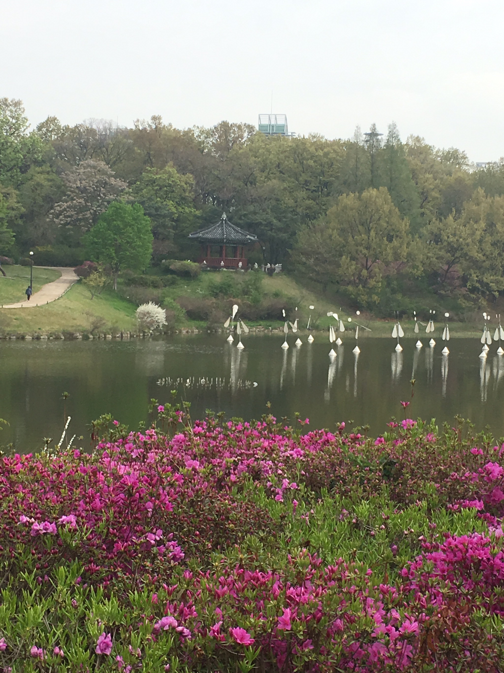 Mom and I started the day after breakfast walking around the Olympic Park because it is just a few subway stops away from the agency that Coppelia was at. It was so different than when Clint and I walked around it in February. For one thing it wasn’t freezing cold and the other is that spring has sprung here in Seoul and everything was blooming and just beautiful. Lots of flowers everywhere.