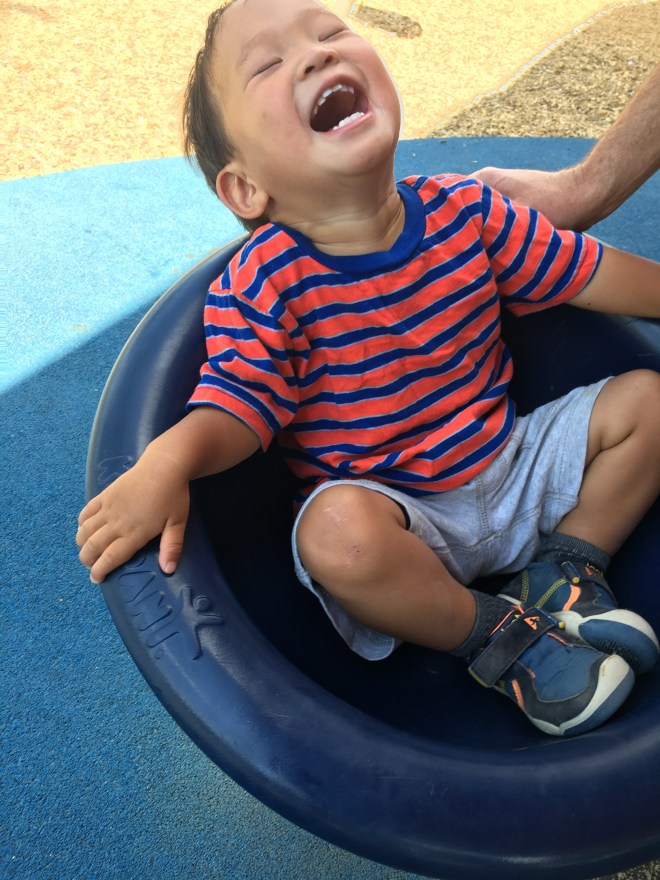 Paxton is full of joy, I wish I could bottle his belly laugh that he has on the swings (or when we are chasing him, or tickling him or at any point really) and share it with the world. The world would have a little more peace and joy if Paxton could be shared with all. Probably not a coincidence that his name means Peace….He’s still fully a two year old, don’t get me wrong there, there are still the stomping feet and tears when he doesn’t get his way, but overall his demeanor is just one of peace and joy.