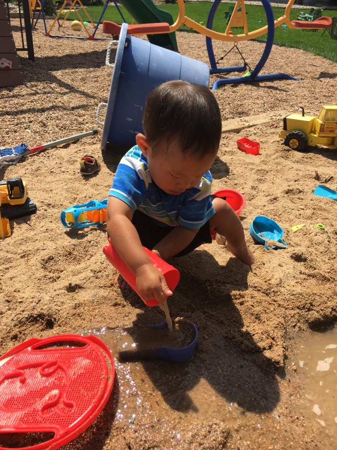 He has a little bit of a temper and will throw a fit when he doesn’t get his way…so basically he’s a typical 2 year old. Waiting for something does not come easily.