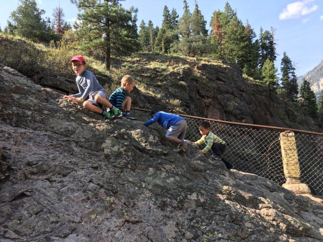 Ouray is a great little mountain town. Everything however is uphill from wherever you are in town. It doesn’t matter where you are at or if you walked uphill to get to where you are it will be uphill to get back or to wherever else you are going. And our kids love adventure and hiking and exploring….but like every kid sometimes there might be associated whining with going uphill. Nevertheless we went on a couple of hikes which were not real long but everyone really enjoyed and had fun with (despite the little whining associated with it).