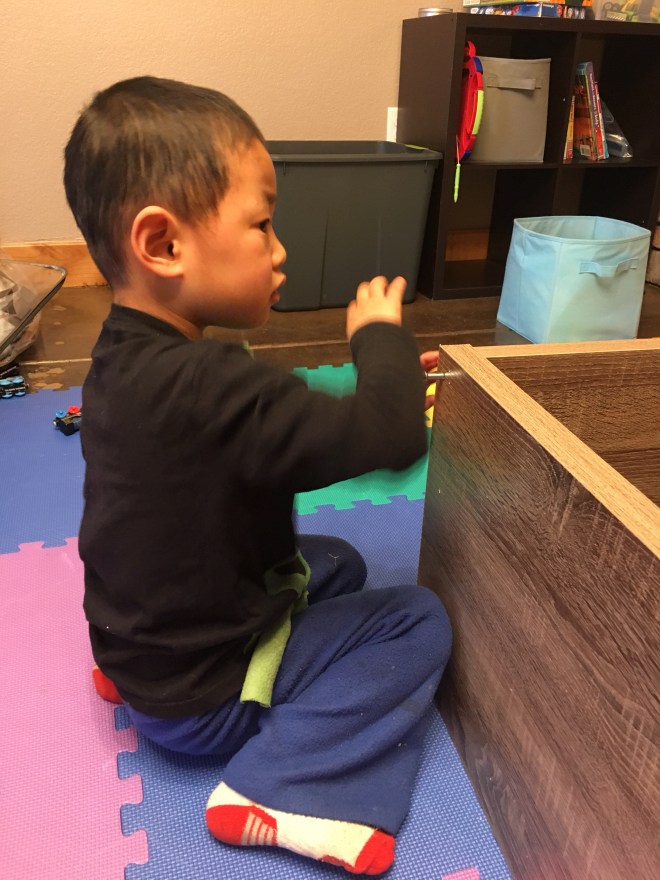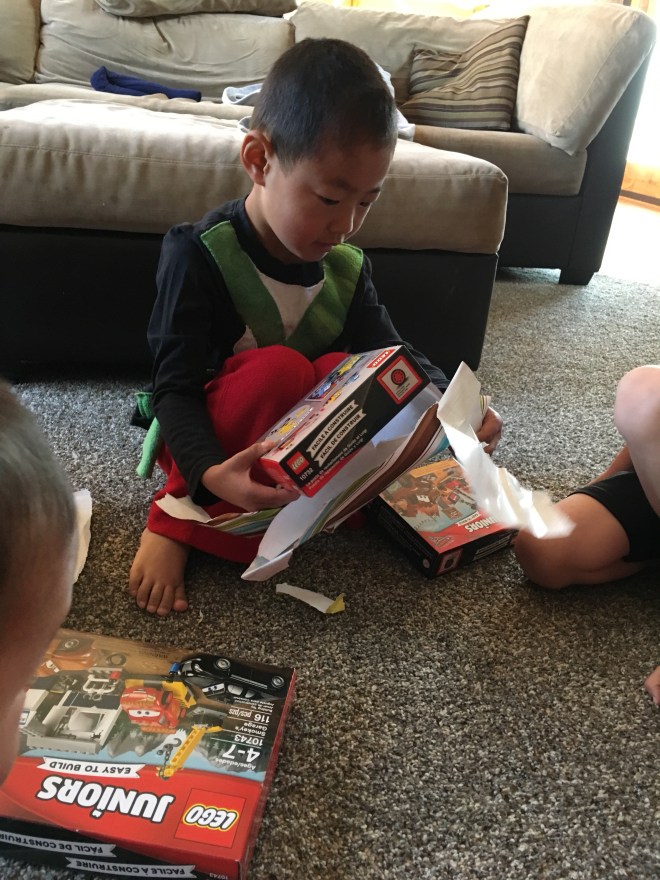 It’s crazy to think that he is 5. He is often mistaken for being younger, I think its a combo of his small size and his speech delay. His speech has been growing tons and while he still has a ways to go he’s coming a long. Sometimes I get overwhelmed with how far he still has to come, but I need to remember to look back and see how far he has already come. And he’s not very big, but that doesn’t usually stop him. He enjoys playing outside and loves riding his bike. And he loves working with tools and taking things apart and putting things back together. He got a tools set with a set of real tools…I’m a little worried what we might find taken apart in the days to come…..