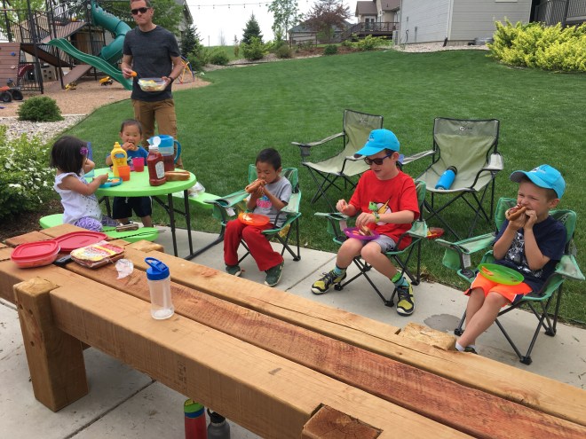 On our last day of homeschool last week we did a cookout for lunch with hot dogs and s’mores. Everyone had a blast with it and it was a good way to celebrate another year done.