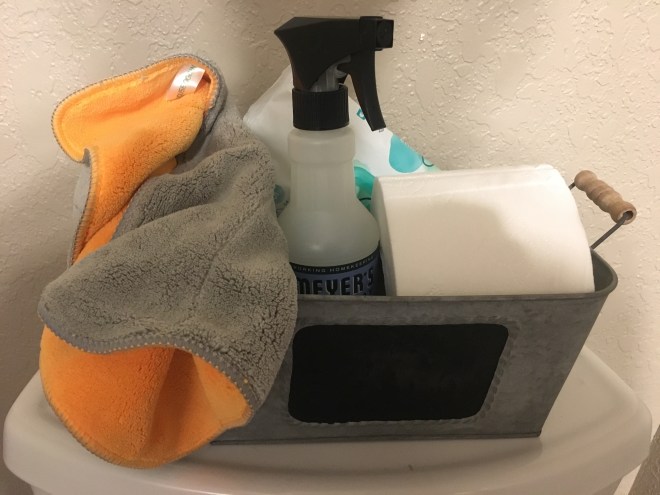 And so it was finally time to do something else because what I was doing wasn’t working. At all. And I realized at least the three older kids know how to use squirt bottles and know how to use rags. And so they were each assigned a bathroom fixture, Leighton got the toilet upstairs, Caedmon the toilet down stairs and Edric the sink/counter tp in the bathroom upstairs. They were each given a bottle of cleaner (total side note, I have become a big fan of Grove Collaborative and their collection, first off their stuff smells amazing, and works great, is environmentally friendly and I can get it delivered to my door instead of having to stop at Target which always means I spent at least 100$ more than I planned despite only needing 2 things-Grove Collaborative totally eliminates that!) and I demonstrated what I wanted done…..daily. For the toilets I expect them to spray and wipe down everything on the outside, the only part that doesn’t get a daily wipe down is the inner bowl which we do once a week….and somehow is always the least dirty. For the sinks I wanted all the random toothpaste mess gone every day.