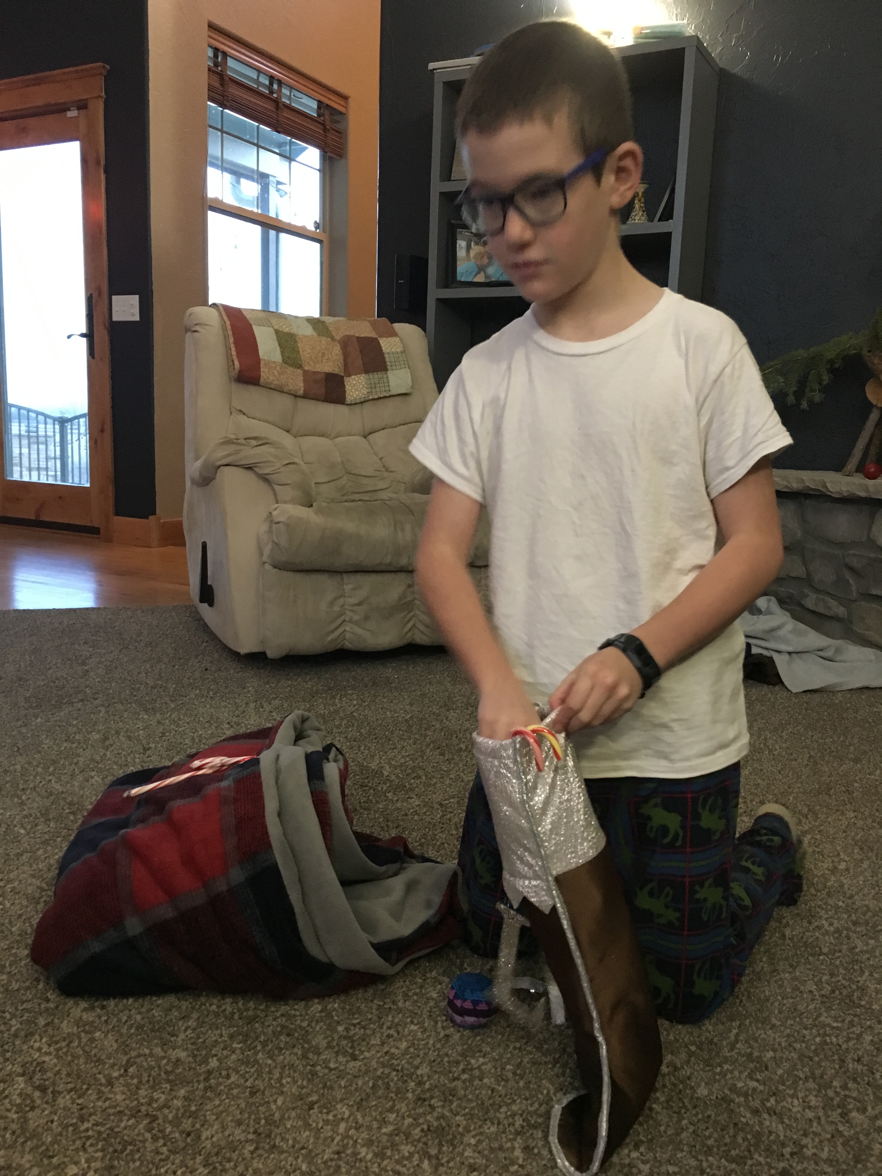 I worked during the day on Christmas as well and so Clint and the kids hung out and skyped with his parents that morning. The kids opened their gifts and they had a good time talking and such. We had a low key evening when I got home and then we got our Christmas set up after the kids went to bed. I made fleece blankets for each of the kids this year so we put that with their stockings for the morning time.
