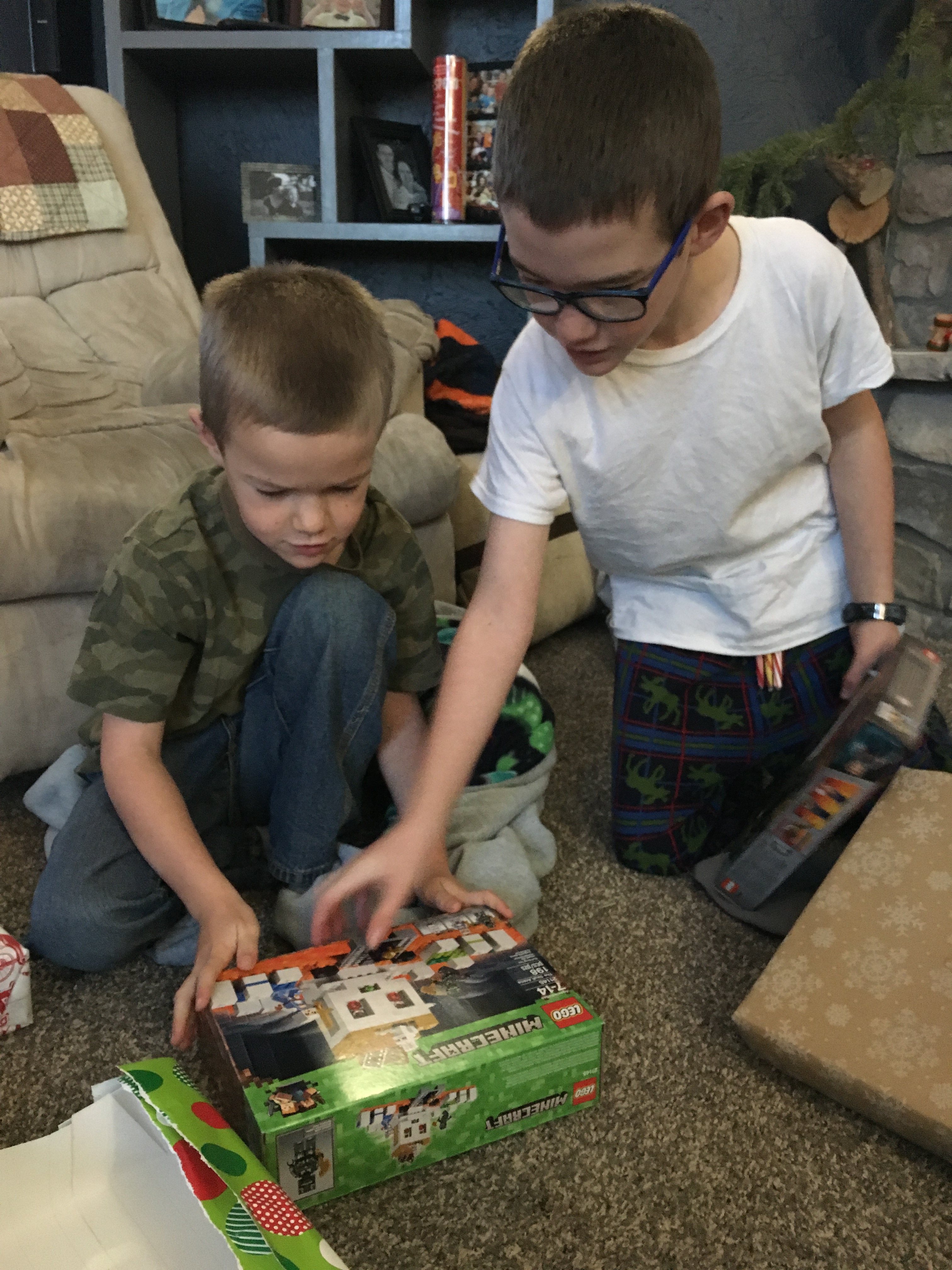 My parents and brother and his new wife, Heidi, came over around 10 and we had fun opening gifts. The boys all got Legos which I don’t think there is a Lego that they are not excited about. My parents got them a giant bubble maker and a giant cargo net for their play structure. We got the cargo net up this past week and then kids love playing on it. We had a great ham dinner and then played games for the afternoon.