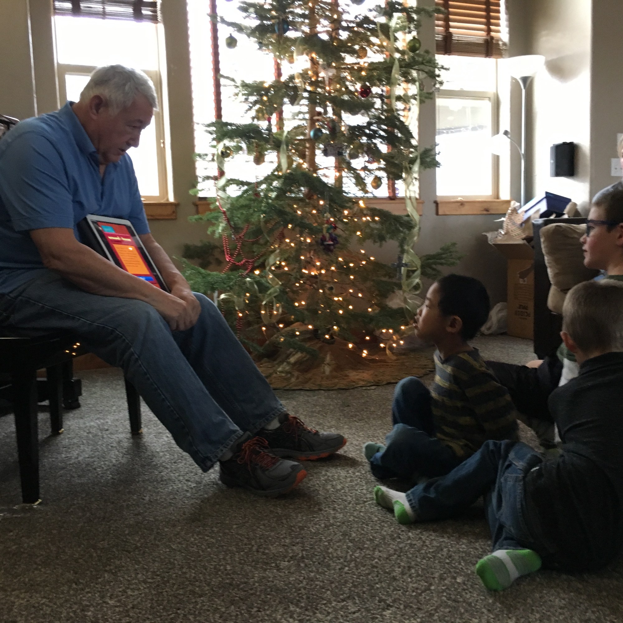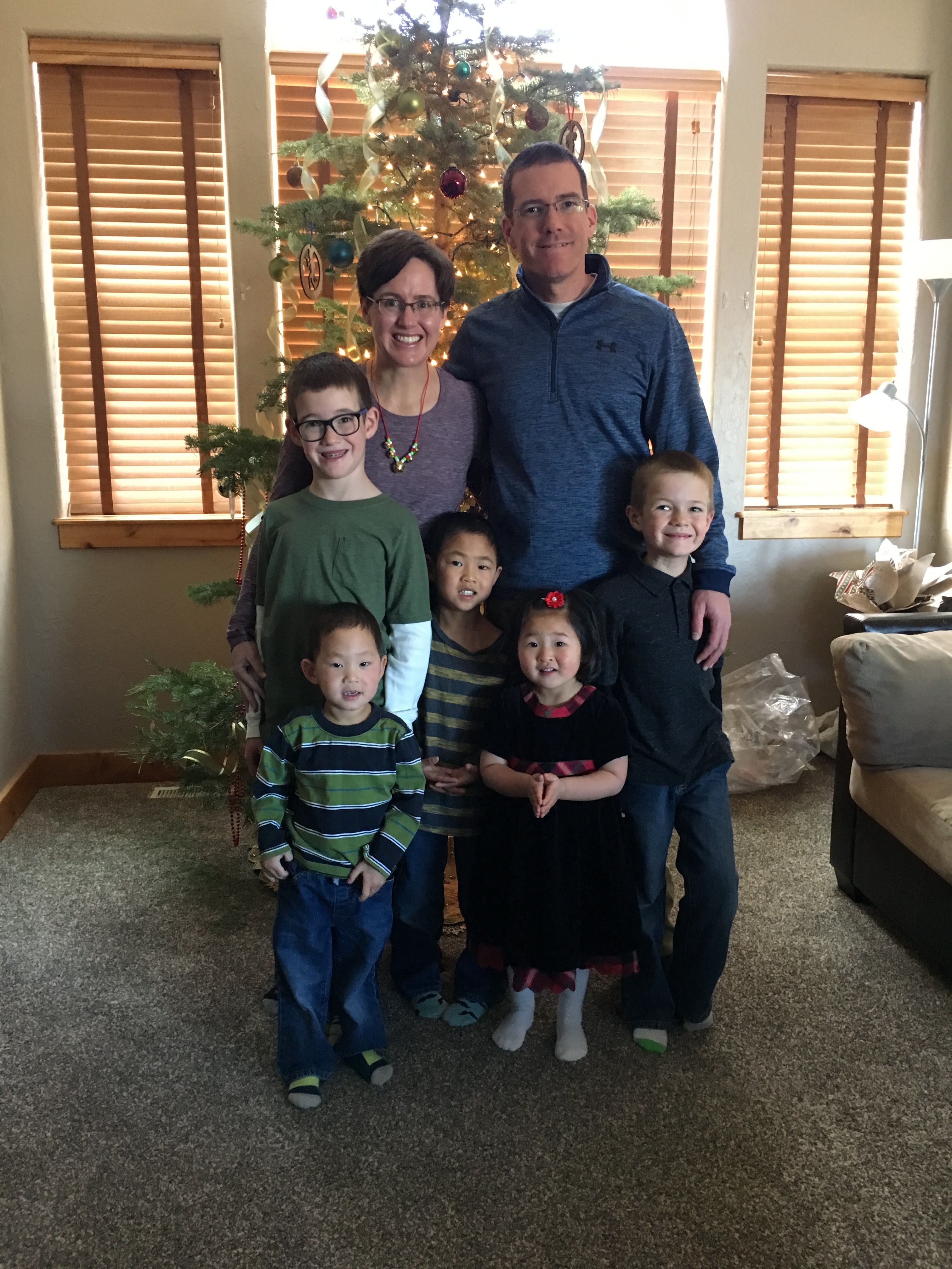 So we are nearly a month removed from Christmas but I’m just getting around to finally getting our Christmas post written and posted. Our Christmas was broken up a little this year because I worked day shifts both the 24th and 25th. I made it home in time on the evening on the 24th to ride with everyone up to our new church for Christmas Eve Service. We are helping with a church plant in Fort Collins that officially launches this next weekend but we had a Christmas Eve service at a local hotel. I love Christmas Eve services, unfortunately we didn’t think through this one well enough and let the kids drink hot chocolate when we got there instead of telling them they had to wait till the end so we had 5 very wiggly seat partners during the service. But we did remember the fake battery operated candles for the candle light part…..because we all remember when Leighton caught his hair on fire a few years back during Christmas Eve service…and I just decided I wasn’t even going to think about or worry about that this year with 7 blazing candles in our aisle. Truthfully though I can’t make it through service without cracking up remembering that service.