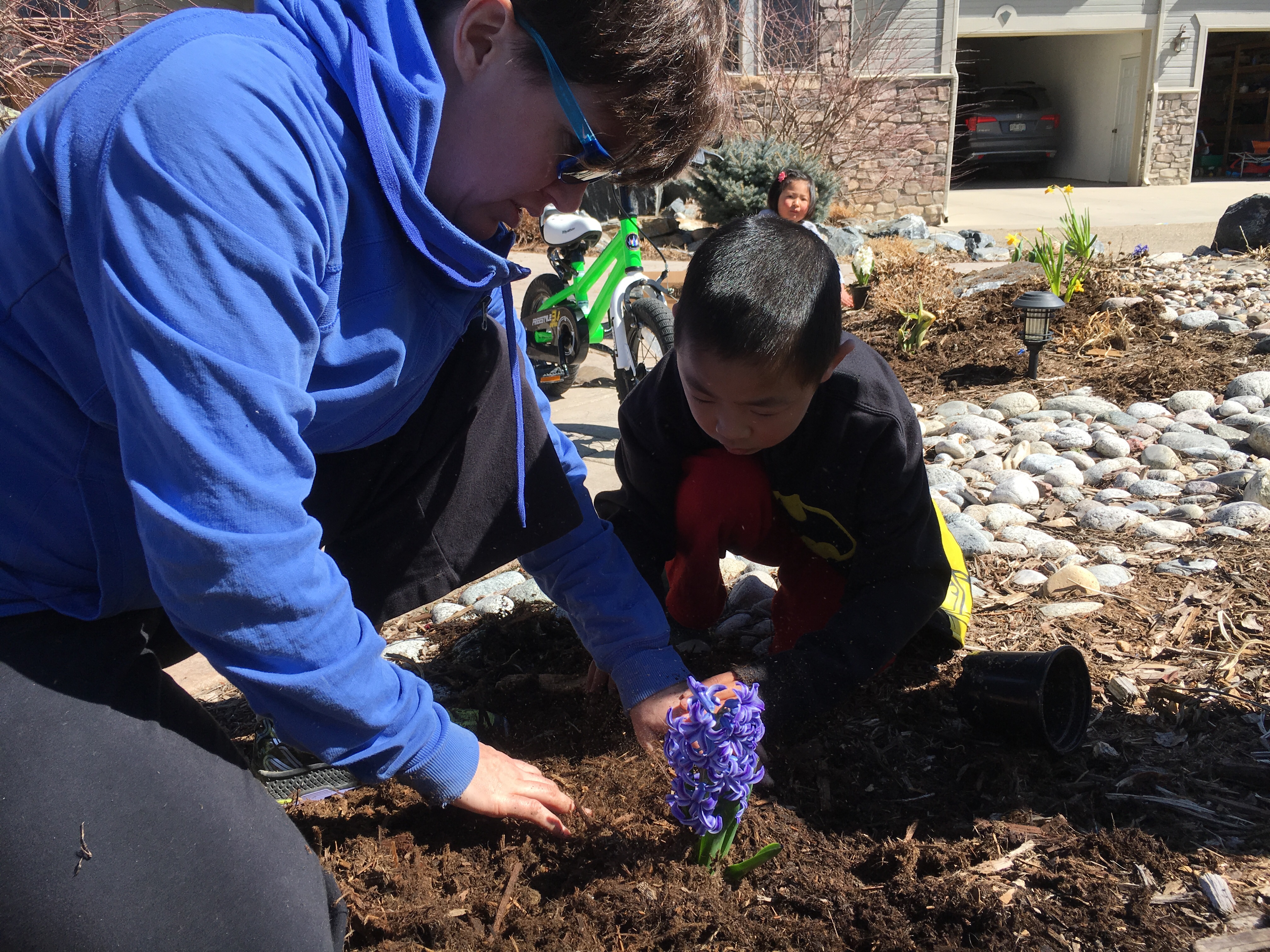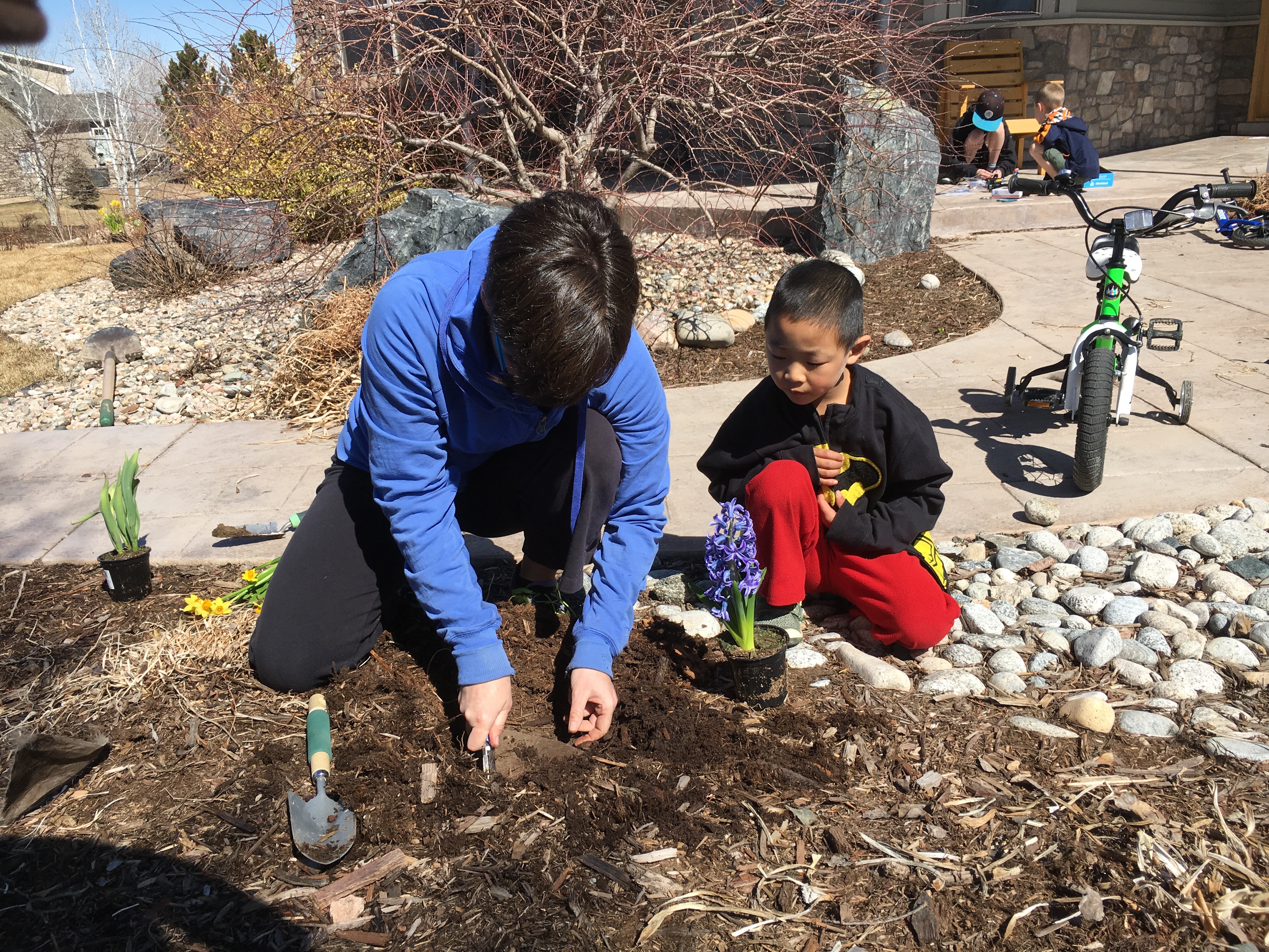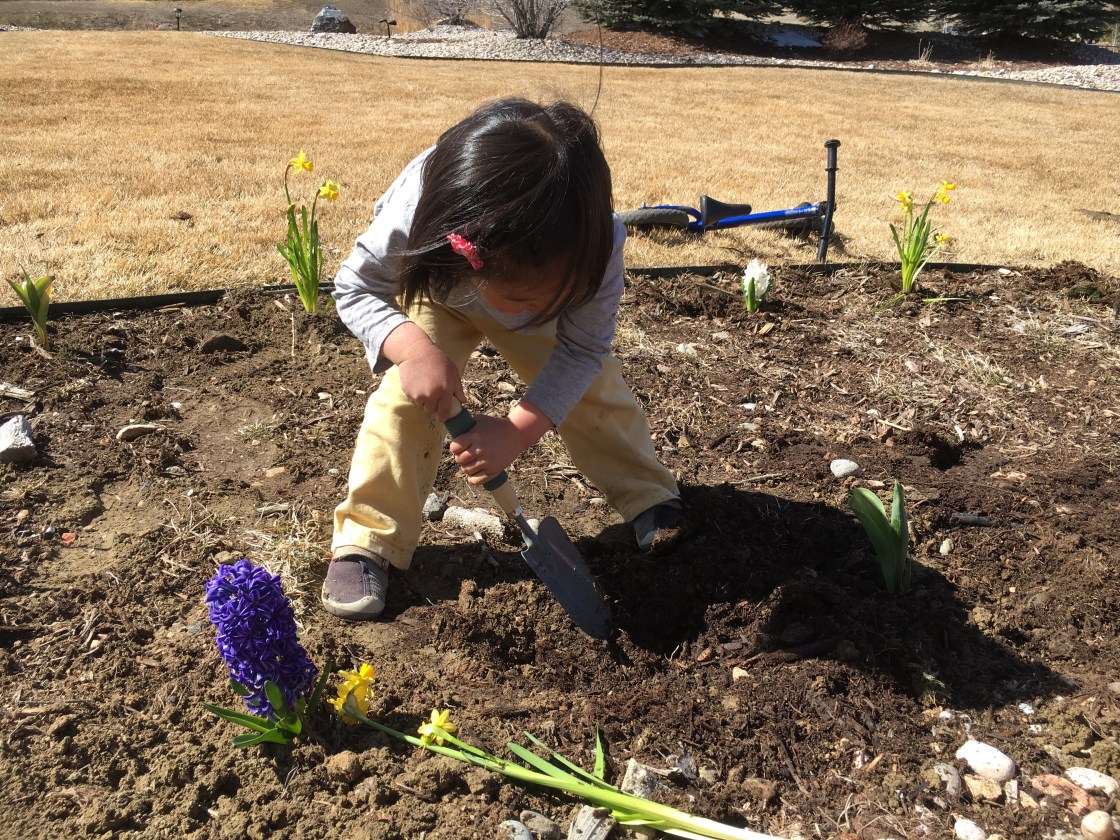 Sunday after church was beautiful, the sun was shining and the sky was blue, it was a little cool but a perfect early spring day (definitely improved over the blizzard conditions from last week). I had plenty of helpers “helping” me plant the flowers. It was a great afternoon and so much fun to be in the dirt and making things look a little more like spring around our house.