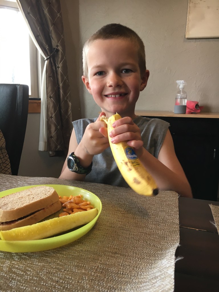 On his actual birthday he told me for his special birthday lunch he wanted peanut butter and jelly sandwiches, bananas, and brownies. So that’s what we had. He got some legos, a transformer, an army costume (which he hasn’t taken off since he got it), and a nerf gun.