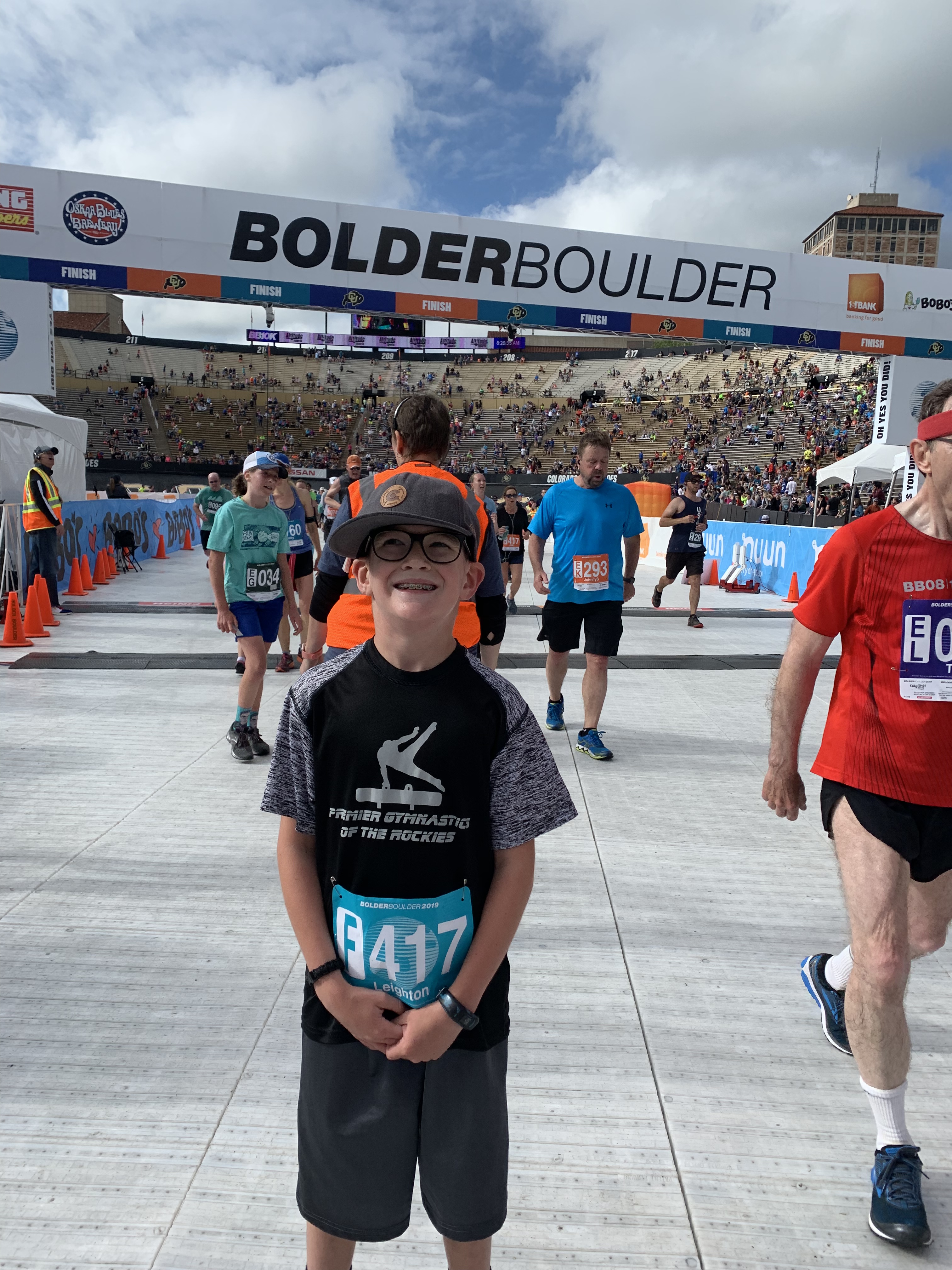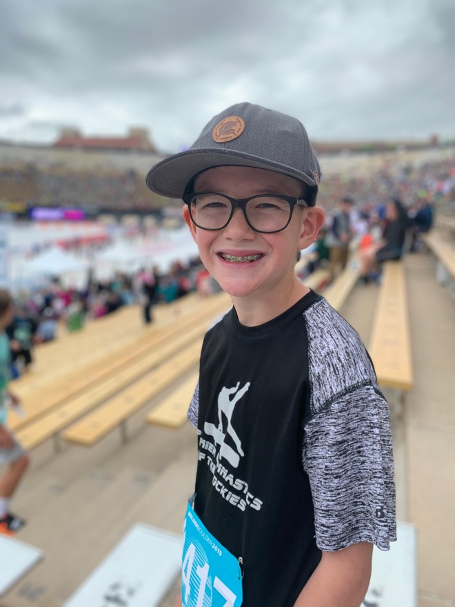 This was Leighton’s 5th running of the Bolder Boulder (I think it was my 7th or 8th….I ran it in middle school a couple of times….). His goal this year was to beat an hour. He ran well enough last year to qualify for one of the faster waves. He was focused through his run and only deviated from the course to do one of the slip-n-slides and to do a cartwheel at the cartwheel station. He ended up finishing in 1 hour 4 minutes, so just shy of his goal, but he put in a solid effort and I was chasing him up the final hill to stay with him. He ended up 35th our of 265 9 year old boys, which he was quite proud of.