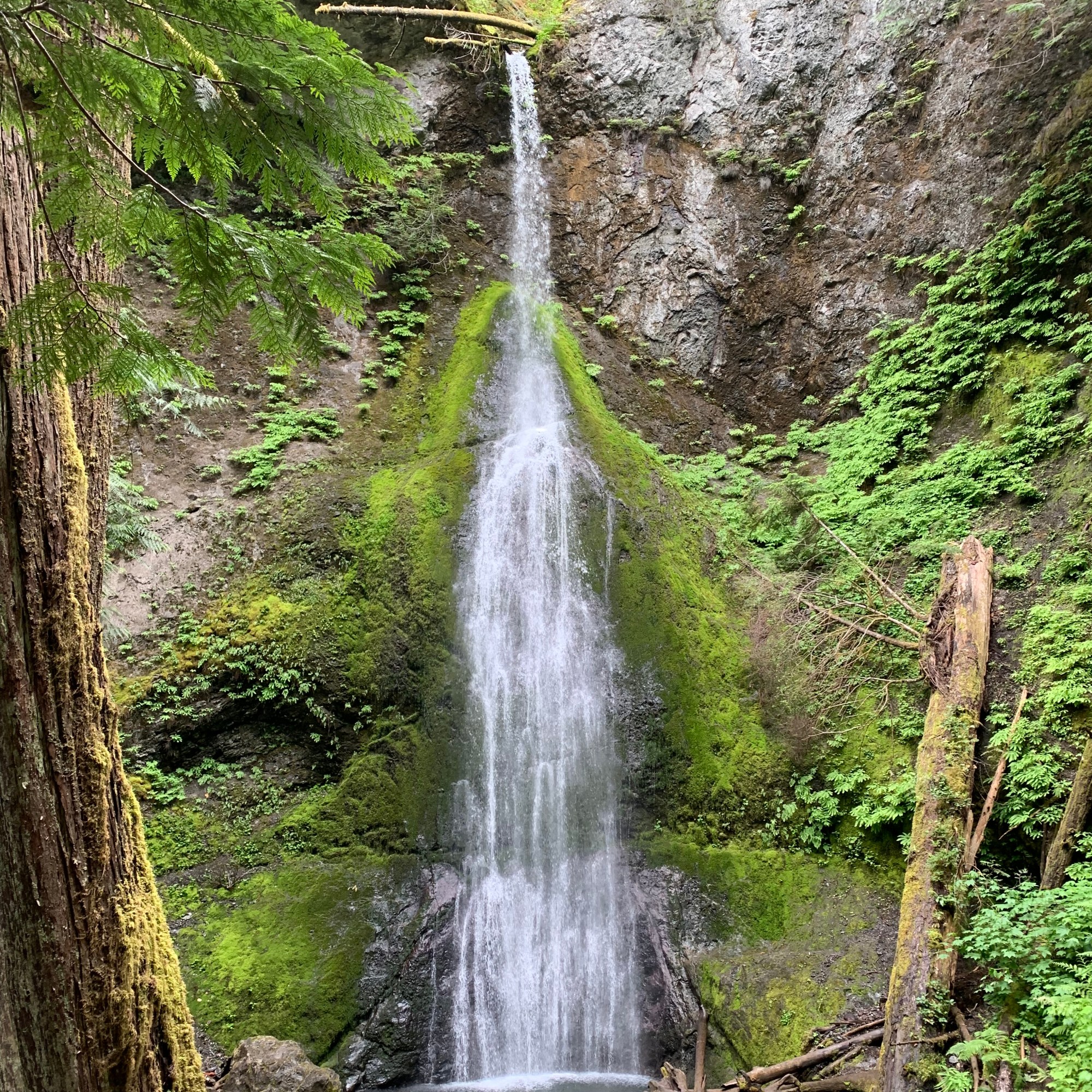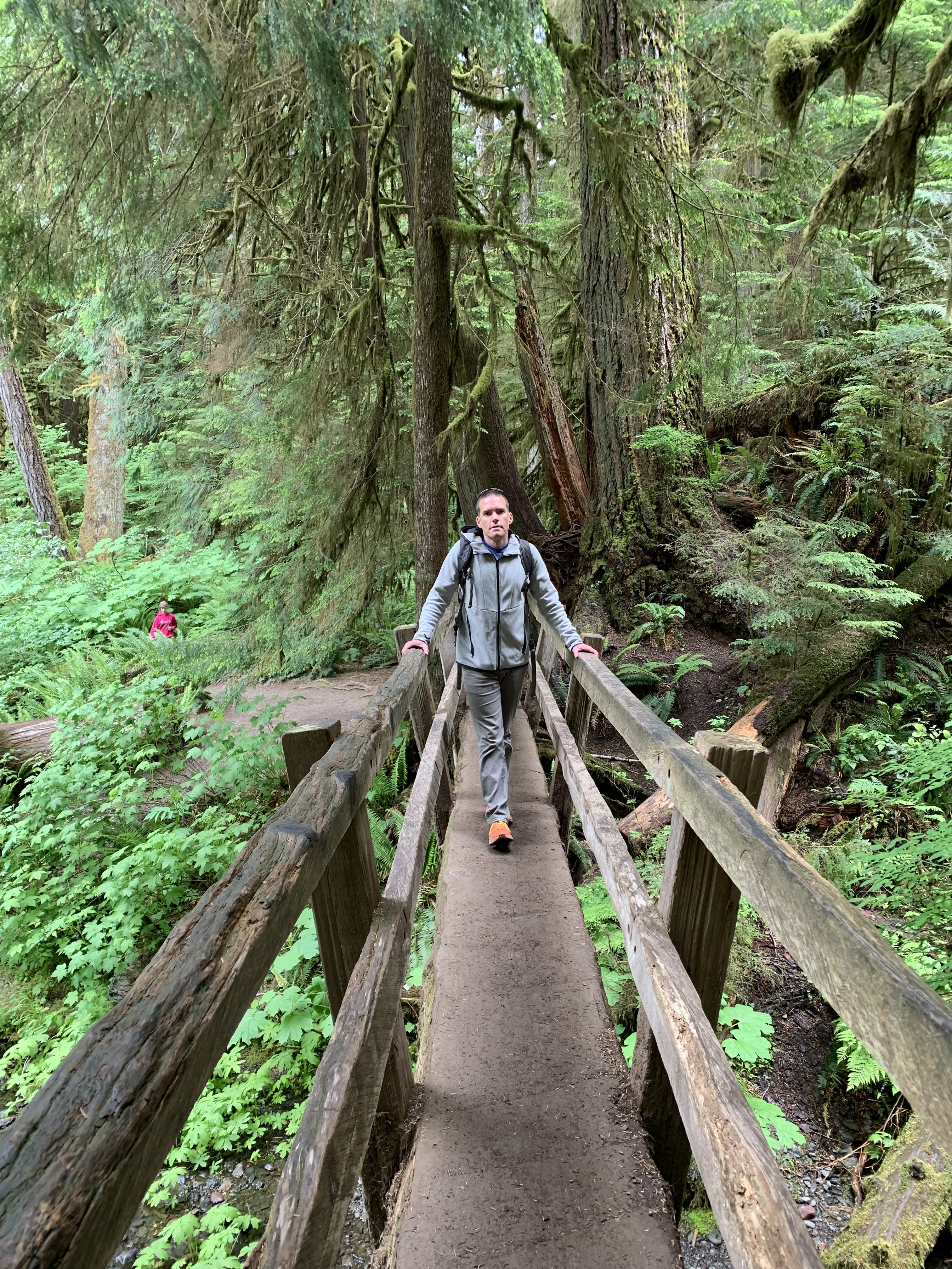 After disembarking the ferry on the other end we drove on to Port Angeles which was going to be our hub for the next few days. I had read about Toga’s Soup House and so we headed there for lunch. Clint said he could have eaten every meal there. If you are ever in the area, check it out. We then drove to the Olympic Park Welcome Center with plans to drive up to Hurricane Ridge, but the ranger told us all we’d see would be clouds and more clouds and instead recommended a nearby hike to a waterfall.