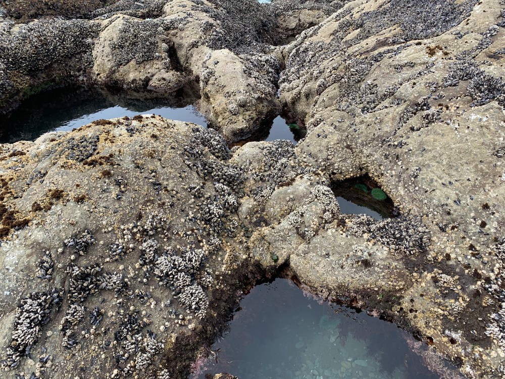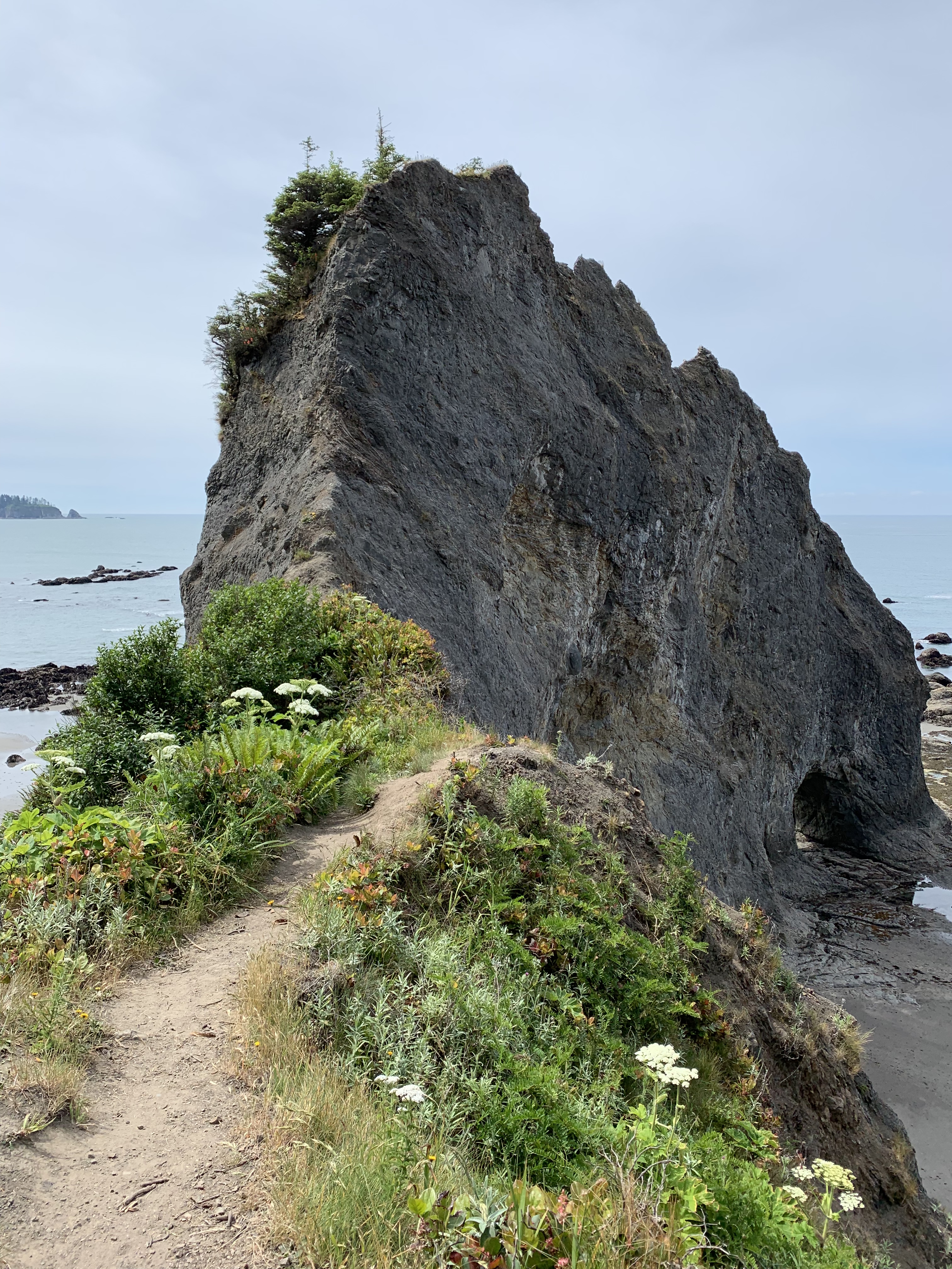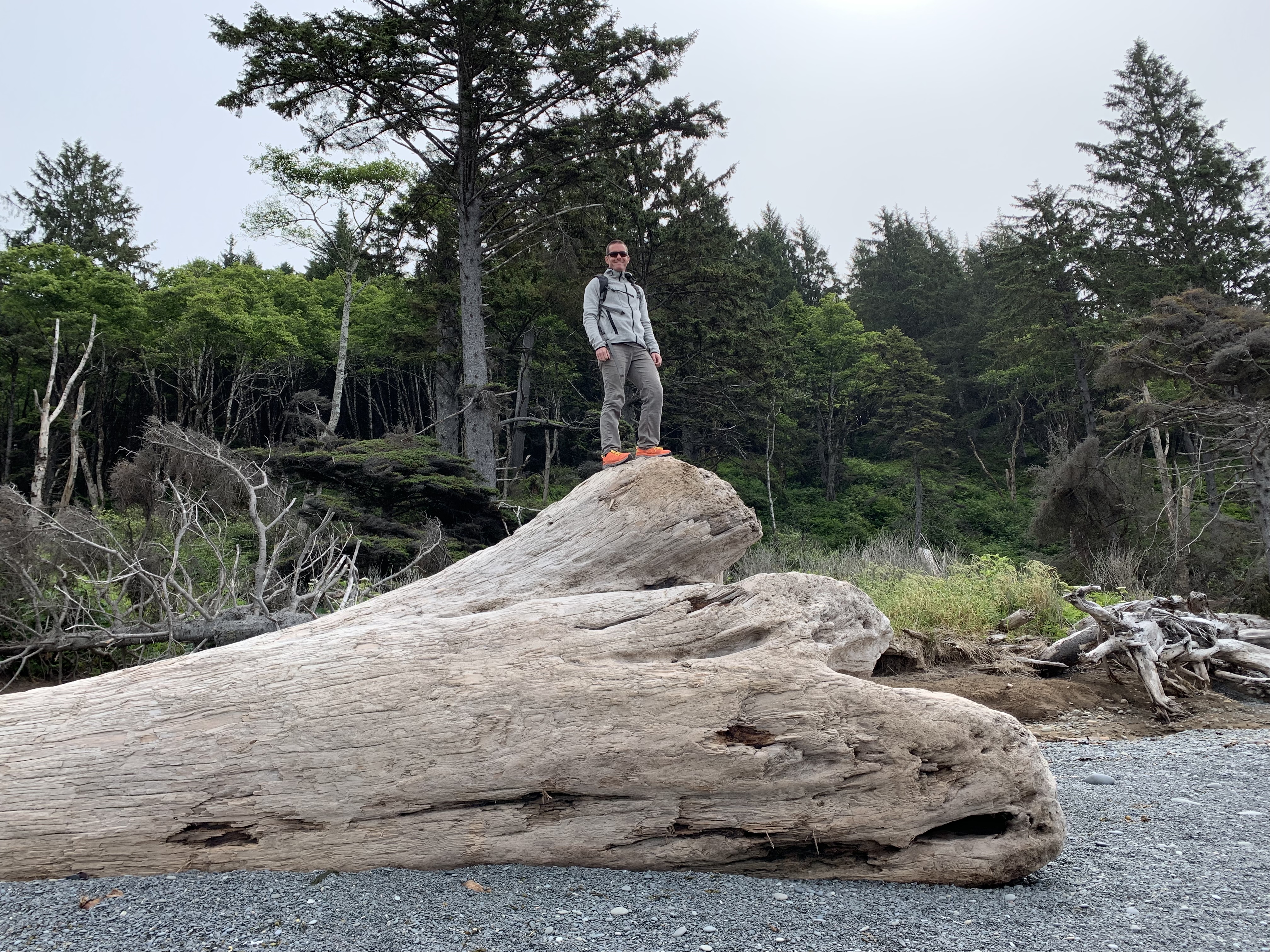 We did a little bit of everything on Day 3. We started the day by driving out to the west coast again, but this time a little farther south to Rialto Beach. It was foggy and windy and cool when we got there and so we bundled up in our coats and started walking the beach. There was a lot of drift wood which was something we hadn’t seen as much of before and a bunch of really smooth stones along the beach which was also different that Shi Shi Beach the day before. There were a number of sea stacks which is part of what Rialto Beach is known for. After about a mile or so up the beach there is a solid wall of rock that during low tide one can actually walk through a large hole in it. We timed it right and walked through and then spent a lot of time exploring the tide pools. The clouds and mist slowly lifted while we were doing that. We again found starfish and all sorts of little creatures. We also found a trial up over the large rock wall that backpackers use when they are hiking and are there during high tide and can’t just walk through the hole in the wall.