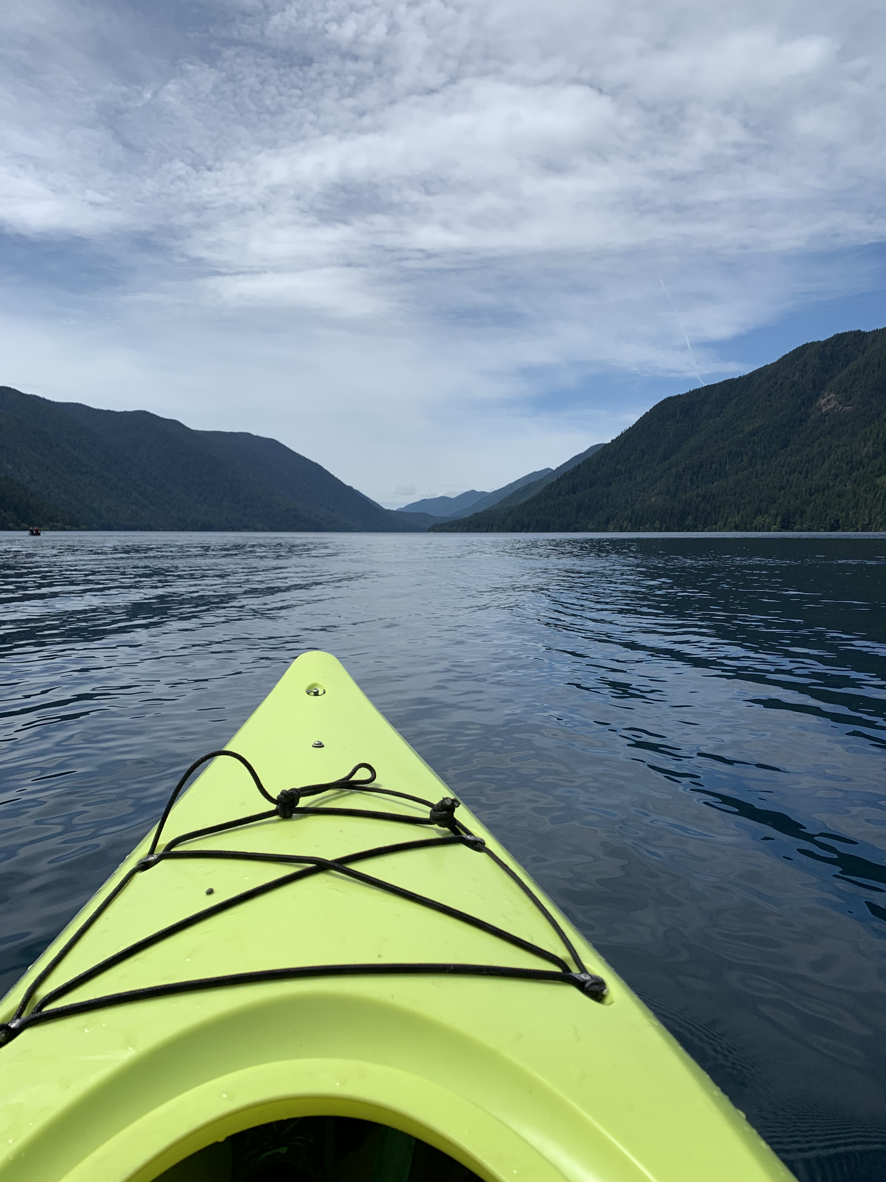 At Lake Crescent we rented a double kayak and went out on the lake. There was a bit of a breeze so the ranger at the dock recommended not going to far out in the center of the lake because it would be a fight to get back into shore. We were fine with that and just explored up and down the edge of the lake and had a good time. We were impressed that we could actually survive in a kayak together as the last time we were in a double canoe we spent the majority of the time fighting against each other. The views were gorgeous and we had fun.