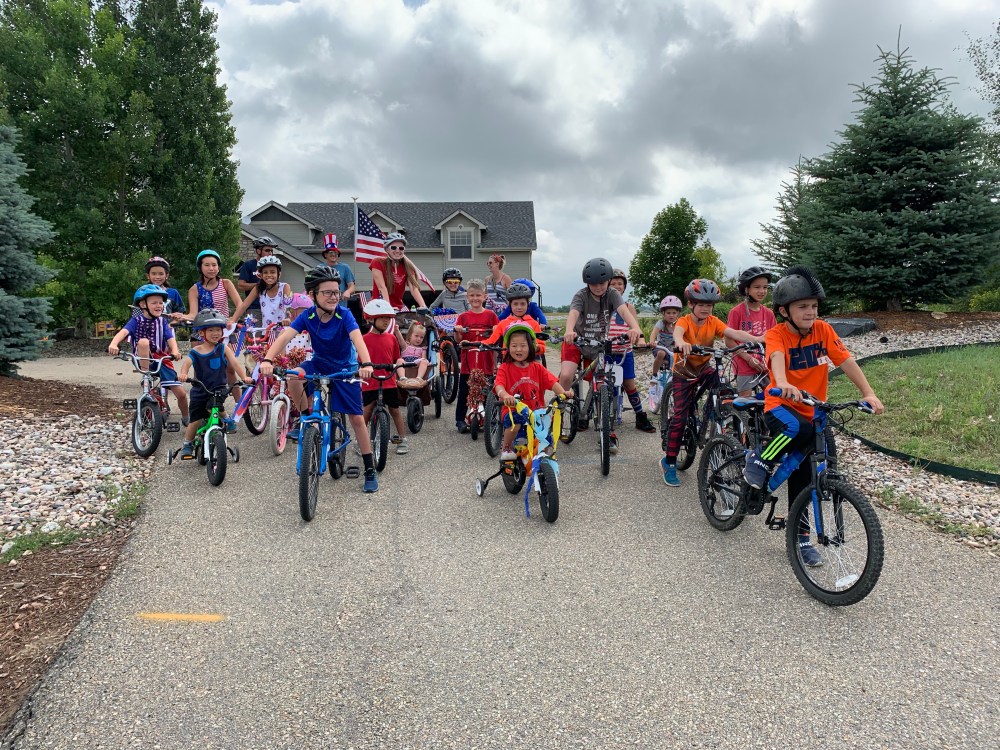 We made July 4th kind of a whole weekend celebration instead of just a day. It just kind of came together that way. We started the morning with the now annual neighborhood July 4th parade. All the kids met at our house on their bikes, most of which were decorated, (our family only had purple and yellow streamers…so you know we just went with it), and then they rode around the block. Which meant that the bigger kids raced and made the 1.8 mile loop in about 5 minutes, and the littles and parent walkers took about 35 minutes….Coppelia was slowing down quite a bit with me walking with her and I reminded her that there were popsicles waiting at our house at the end and that totally motivated her the rest of the way. Everyone kind of chilled at our house on the zip line, play structure and all over for a bit after the parade.